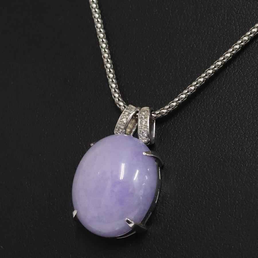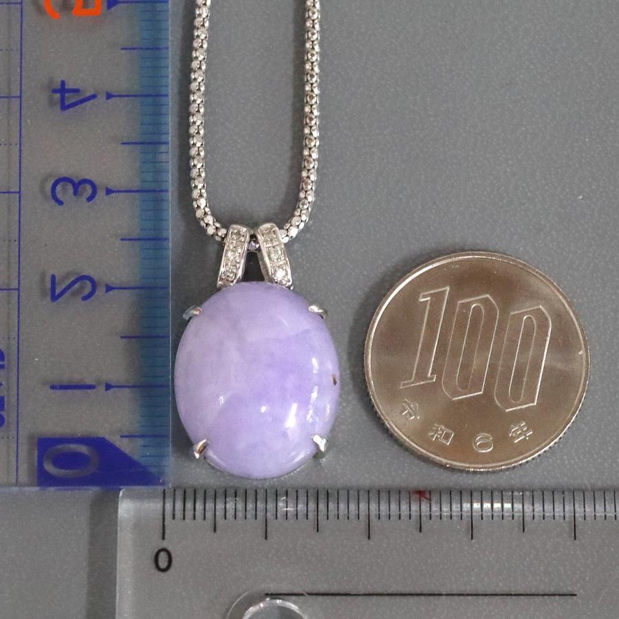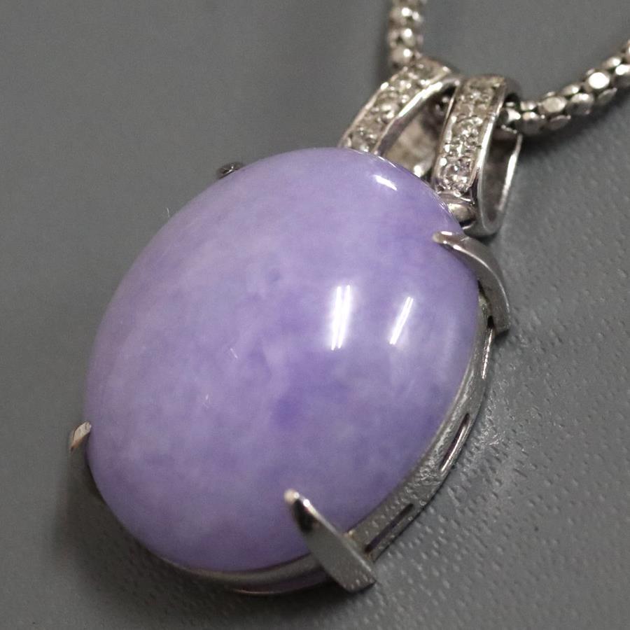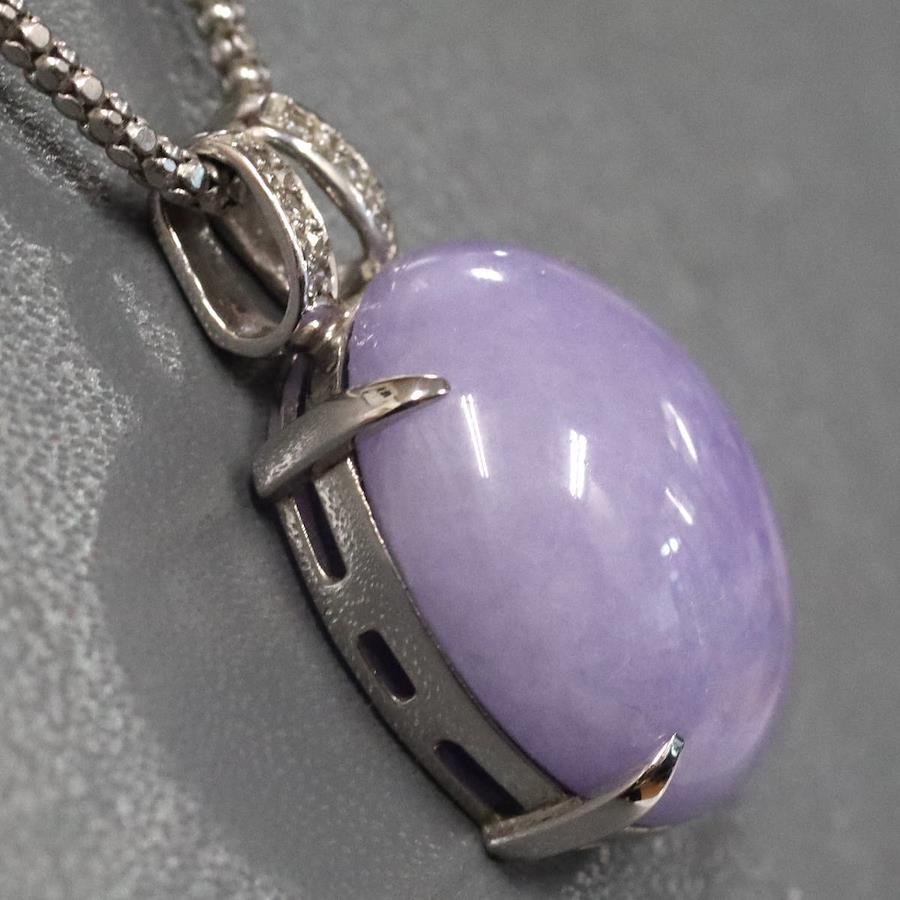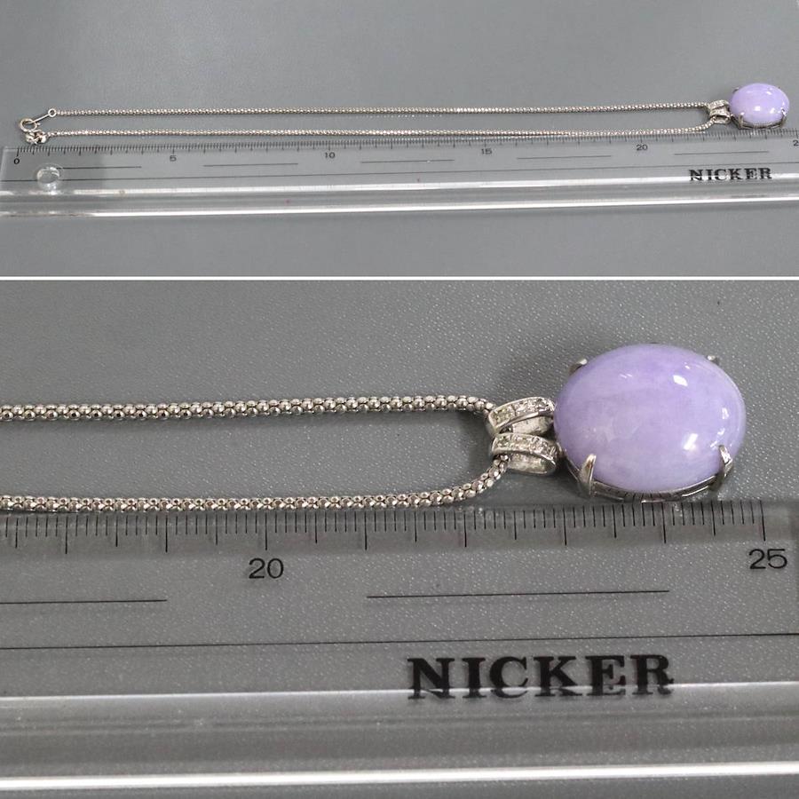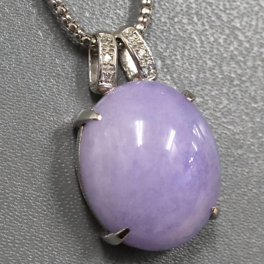 +---+---+---+---+---+。{状態}A{素材}トップPt900,ラベンダー翡翠,ダイヤモンドチェーンK18WG{サイズ}トップ約W16mm × H26mm。チェーン長約45cm(アジャスター付き){その他}ラベンダー翡翠23.65ct,D0.04ct,12.2g。{付属品}なし(サービス箱をお付けします){お問合せ商品番号}25103043+---+---+---+---+---+。