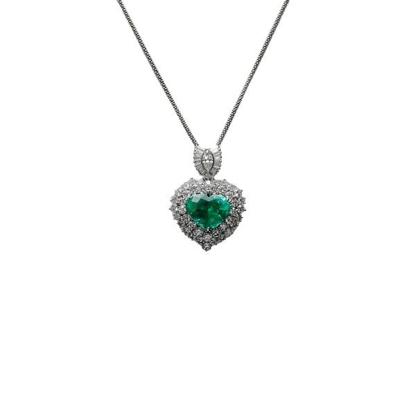 K18WG White Gold Emerald Diamond OTHER Necklace Heart
