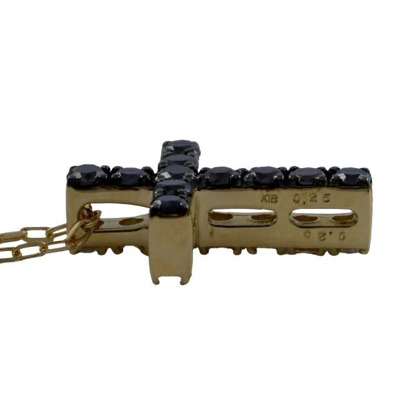 K18YG Yellow Gold Black Diamond Diamond Cross Necklace Standard Cross Reversible