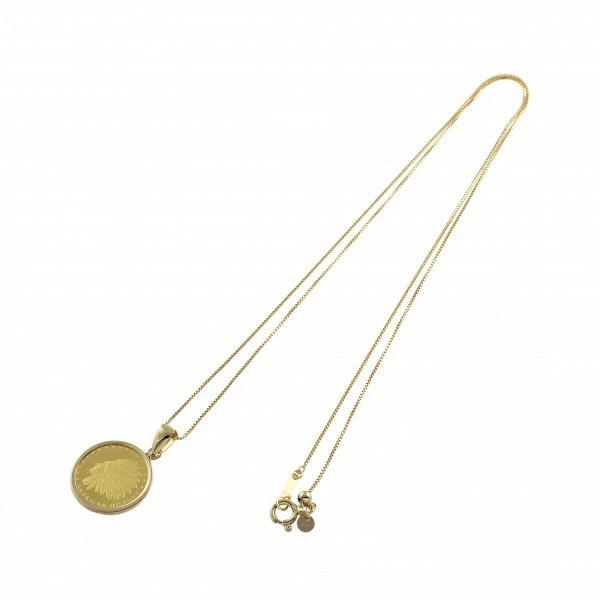 K18YG Yellow Gold K24YG Coin Necklace Indian Eagle