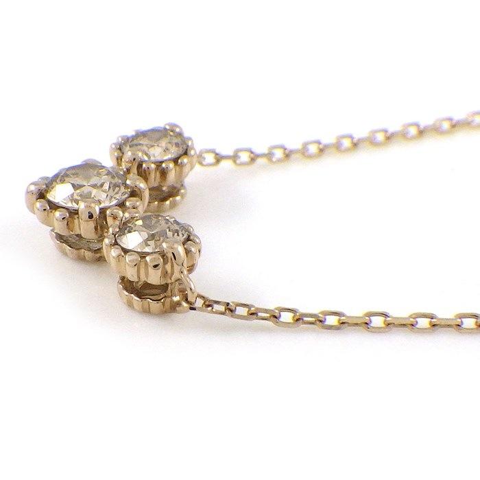 KASHIKEY ネックレス ミル 3ポイント ブラウン ダイヤモンド 計0.30ct K18BG 【中古】