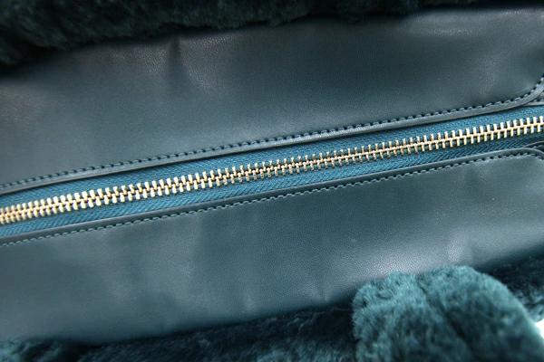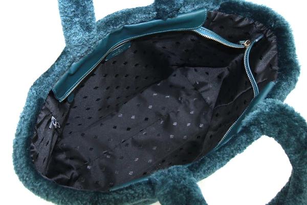 Kate Spade Ella Faux Shearling Tote Bag (K9391) in Green Fake Fur. Pre-owned. Features a green logo and a shoulder strap. Women's.