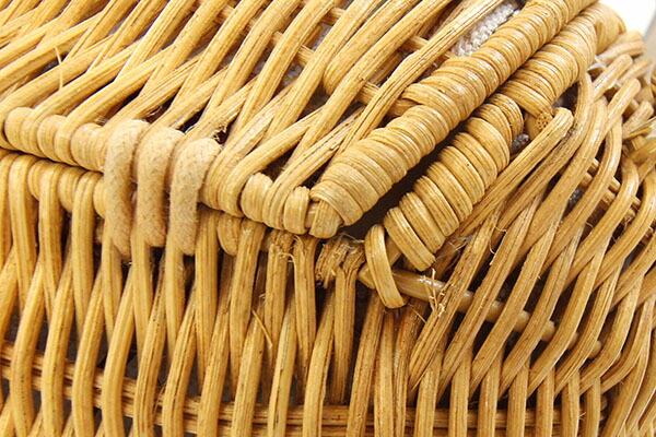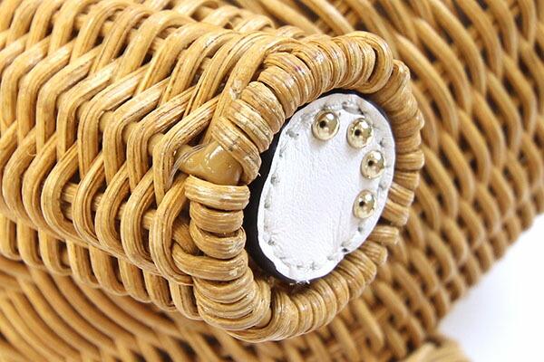 状態 | 外側:ラタン部分スレ、薄汚れあり。レザーにも所々薄スレ汚れあり。 内側:所々ボンド汚れあり。 金具:小キズ、スレあり。 |