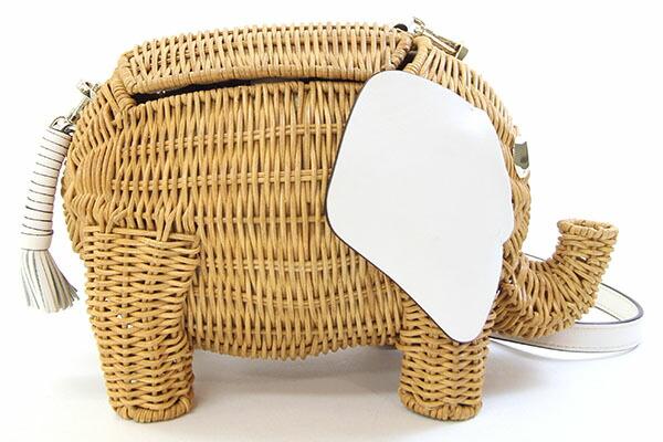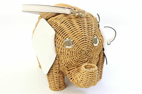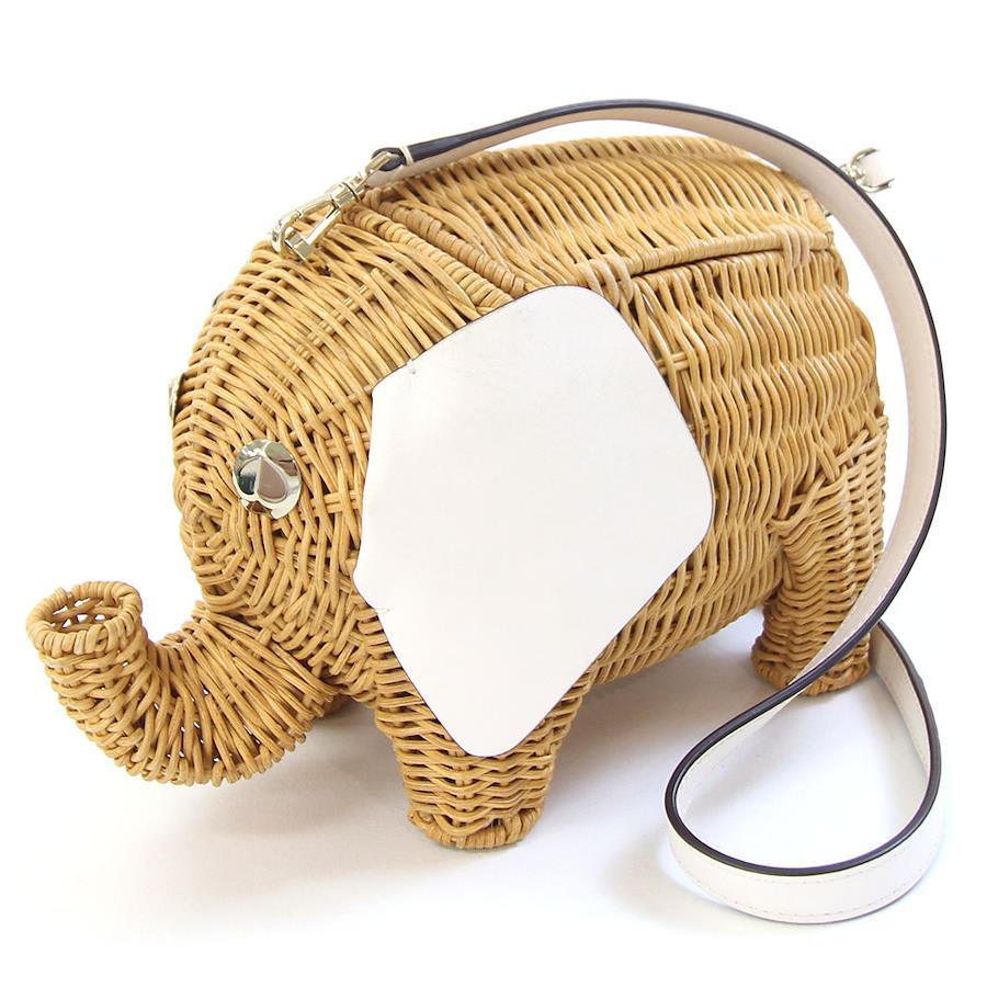 ケイトスペードショルダーバッグタイニーエレファントPXRUB236ナチュラルホワイトラタンレザー中古クロスボディ斜め掛けゾウカゴバッグレディースkatespade