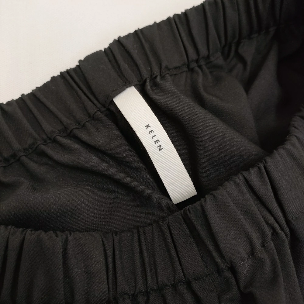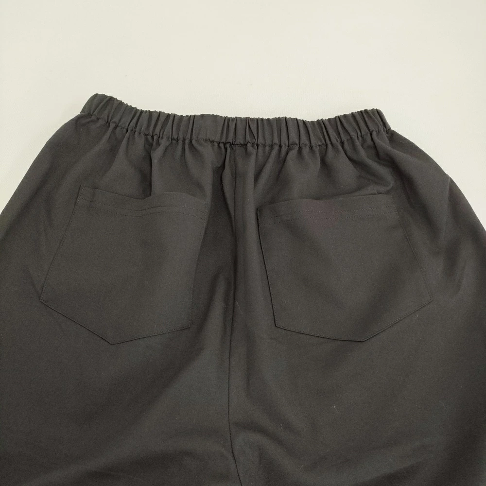 | 仕様 | フロント:なし ポケット:あり 透け感:なし 裾:シングルステッチ ウエスト調整:ゴム(紐なし) 裏地:なし |