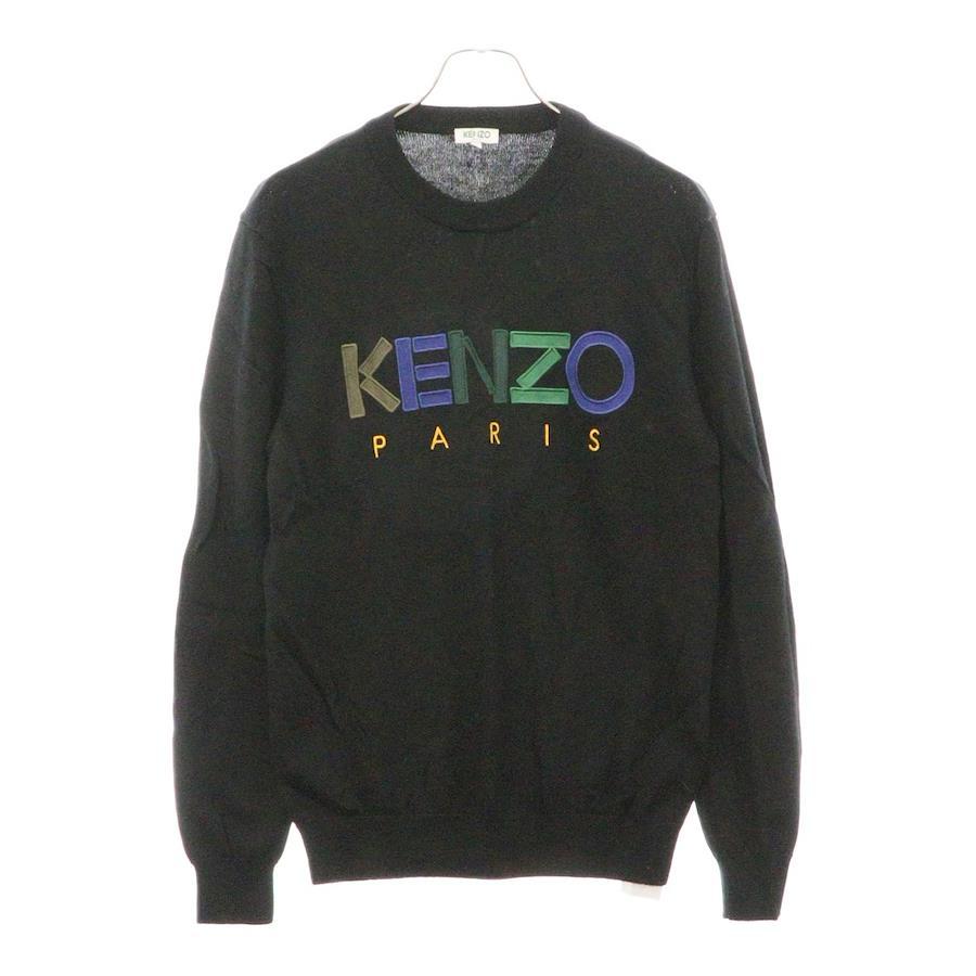 Kenzo Logo Embroidered Crew Neck Long Sleeve Knit Sweater Black F965PU2173LC M Black
