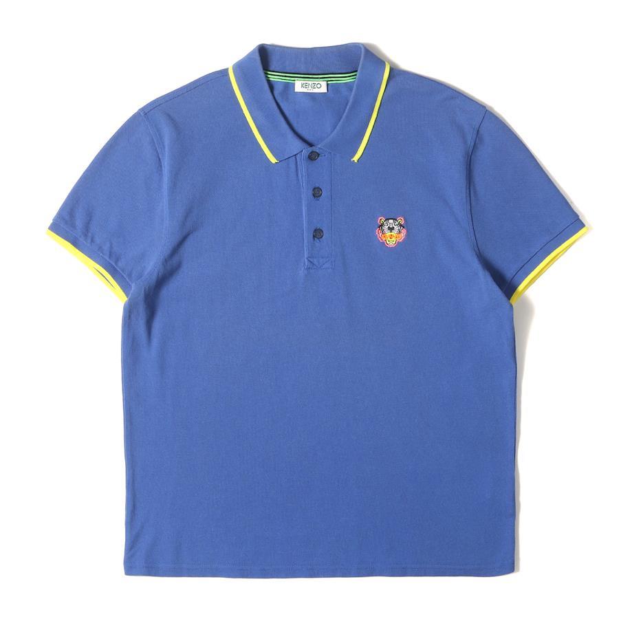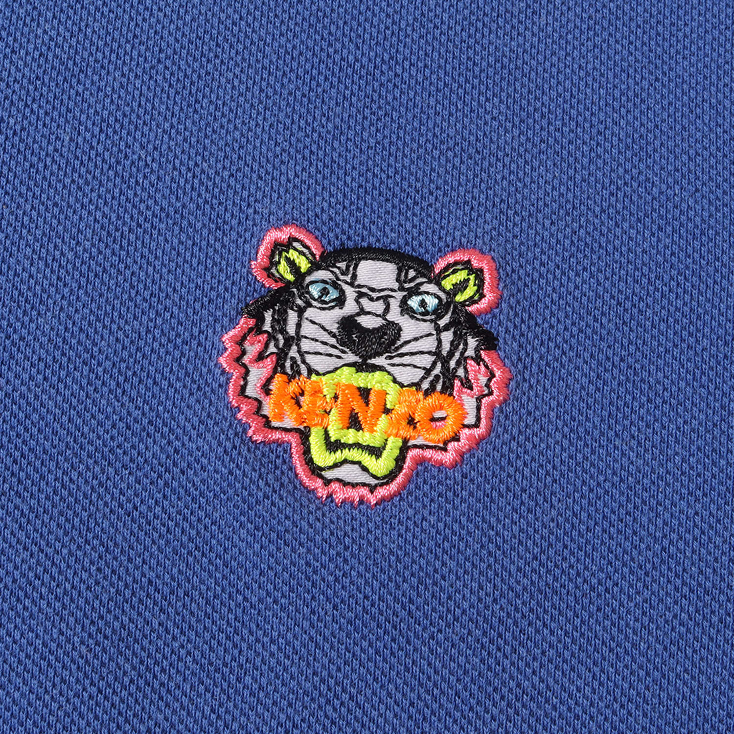 KENZO Men's Short Sleeve Polo Shirt, Size M, Tiger Logo Embroidery, Blue, Pre-Owned, K4619