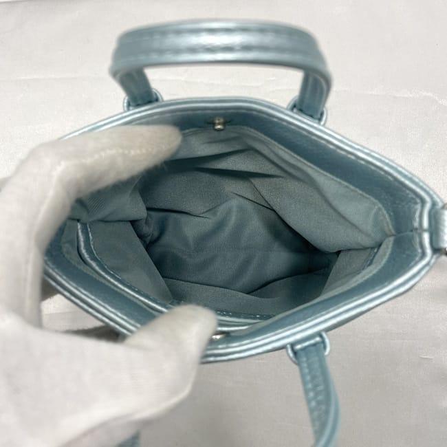 キタムラ ショルダーバッグ ec-23060 ライトブルー アイスブルー 21211 元町 KU8565_D 美品 PVC レザー 中古 Kitamura ミニバッグ ポシェット クロスボディ ミニハンド K ロゴ 定番 人気 小さい コンパクト ミニ 青色 革 お洒落 高級感 ブランド 本物 鑑定済み