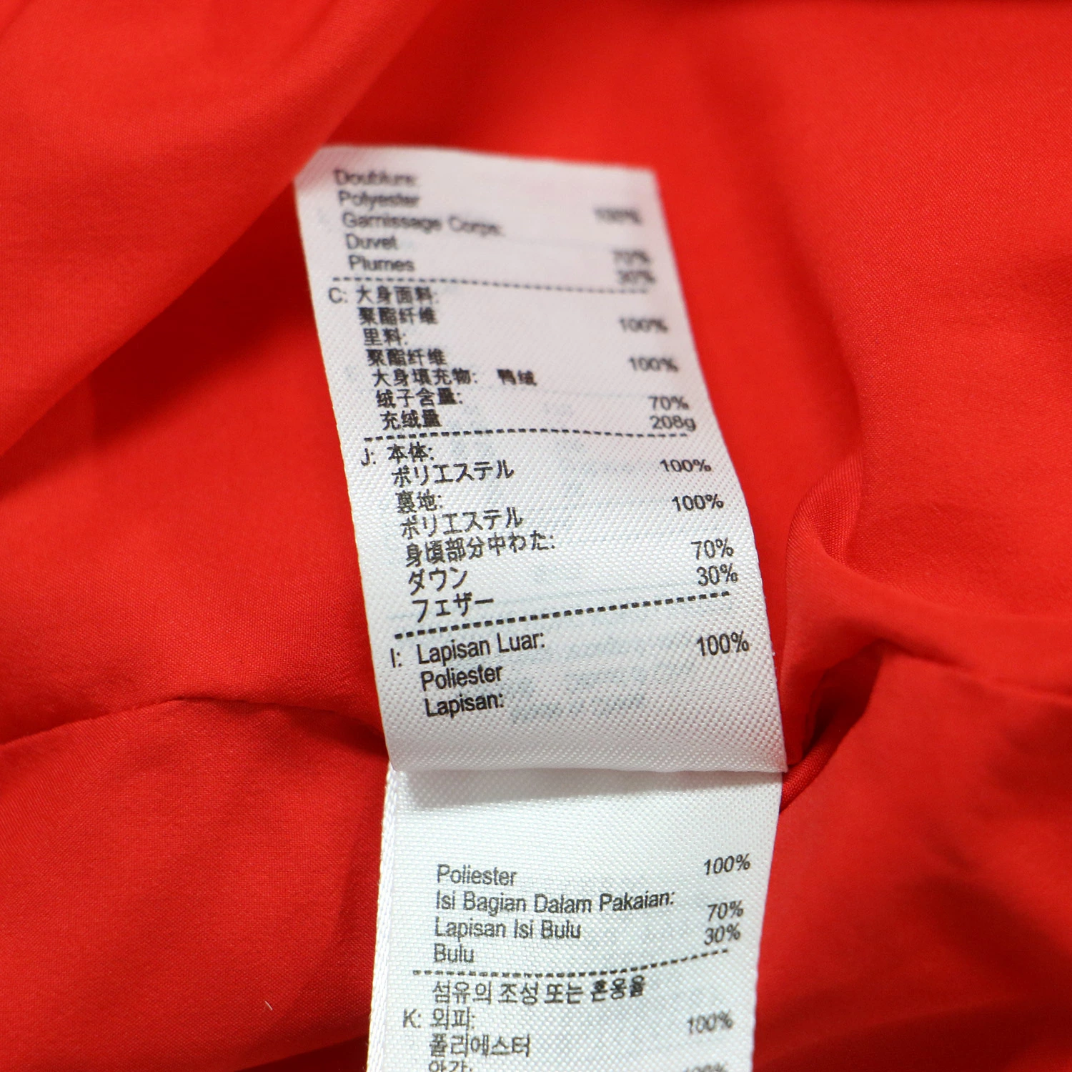 | 素材 | 本体 ポリエステル 100% 裏地 ポリエステル 100% 身頃部分中わた ダウン 70% フェザー 30% |