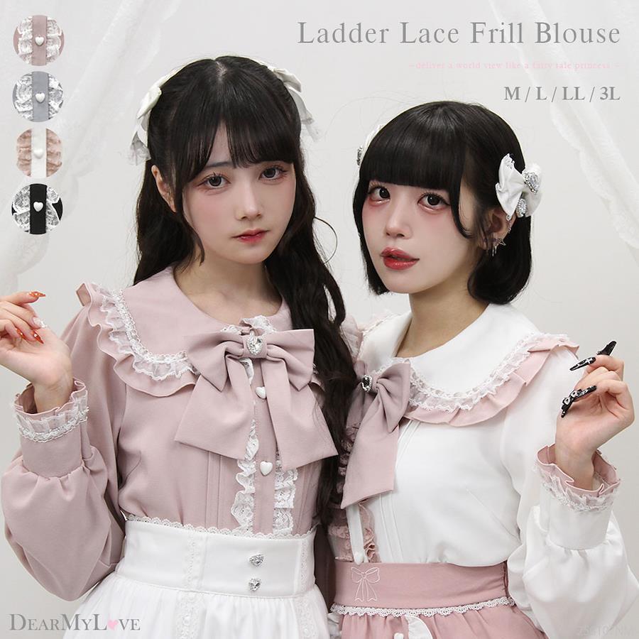 リボンはしごレースが可愛い大きい襟ブラウスのご紹介【デザイン】リボンがついた可愛いはしごレースを襟とカフスに使用しております。前立てには襟とはまた違うレースを使い、さらに可愛くなっております。襟元には取り外し可能なビジューリボンが付いた仕様になっております。レースとフリルがたっぷりの可愛いブラウスになっております。【素材】さらりとした肌触りで、少し張り感のある素材感です。ホワイトは濃色下着が透けることがありますので、インナーの着用をおすすめいたします。【コーディネート】量産型、地雷系コーデにオススメのかわいいブラウスです。リボン刺繍ギャザースカートに合わせて頂くのもオススメです。《透け感》ややあり 《生地の厚さ》普通 《裏地》なし 《伸縮性》なし《生産国》中国