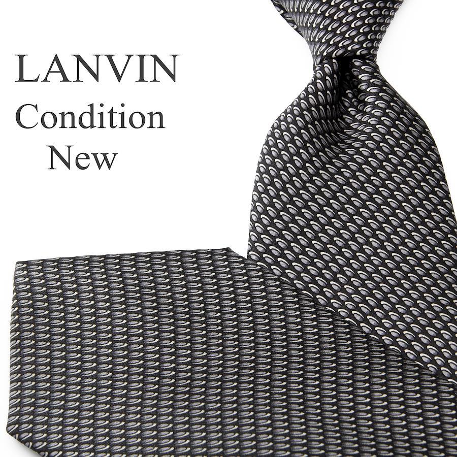 LANVIN Necktie, Narrow, Printed, Brand New, Men's and Women's, Silk, Gray, Black, Business, Casual, All-Over, All-Over Print, Mark, Brand, Rare, Stylish, Made in France, Beautiful, P708