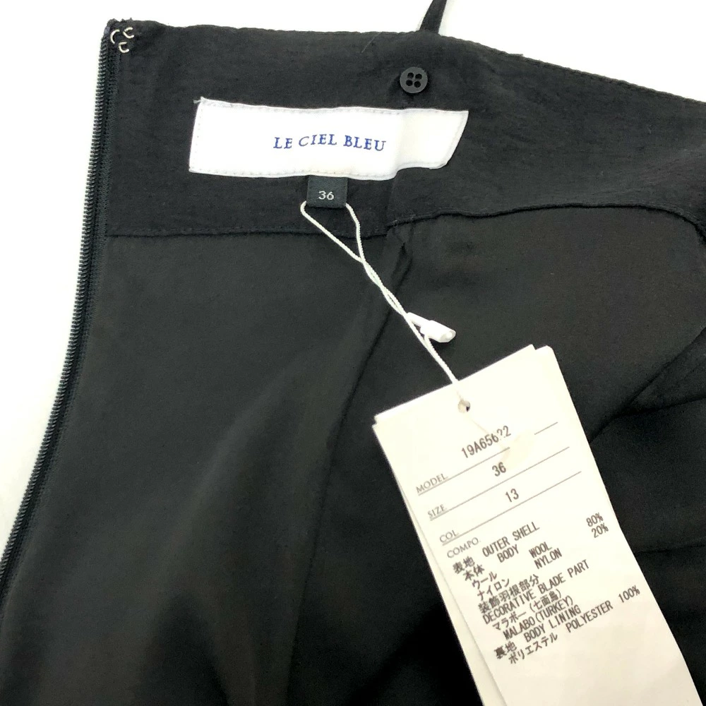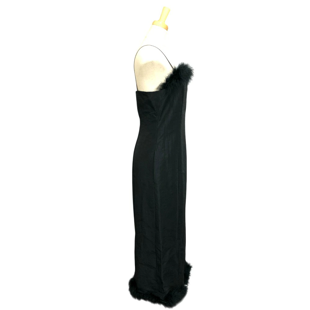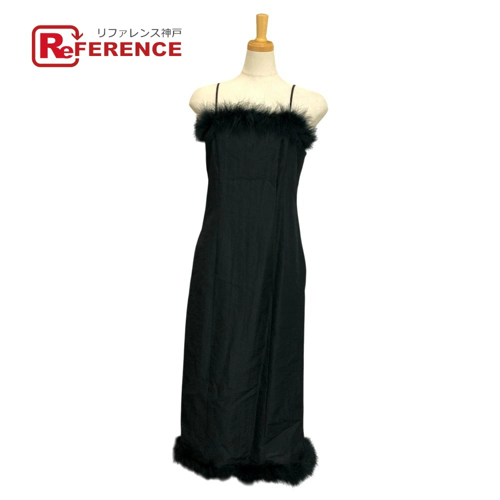 LE CIEL BLEU 19A65622 Marabou Hem Cami Dress, Wool, Black, Women's, Unused, Pre-owned