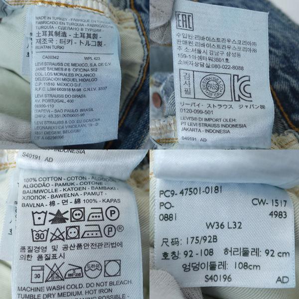 ・メーカー :Levis / リーバイス・製品型番 :47501-0181・サイズ :表記サイズ:36,ウエスト (約cm):94,太腿幅 (約cm):32,股上 (約cm):32,股下 (約cm):78,裾幅 (約cm):22,・色(柄)の系統:ブルー・デザイン :(メンズ)ボトムス/デニム・ジーンズ・ジーパン・素材 :綿100%