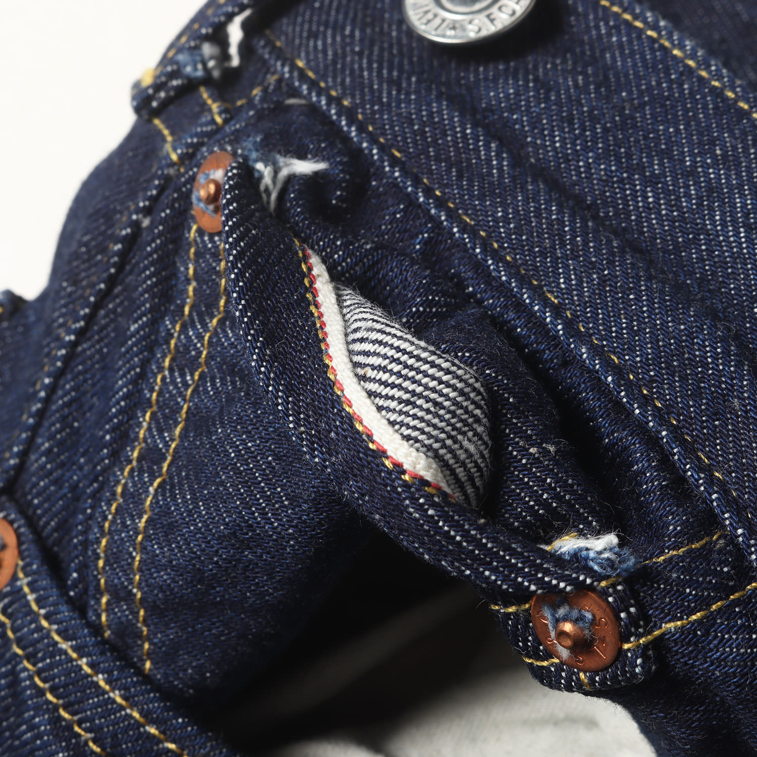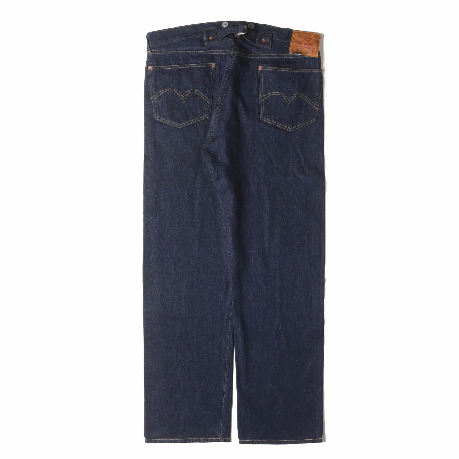 | 商品説明 | ・“1933年 501XX”復刻モデル ・リジッドデニム生地 ・赤耳 ・ボタンフライ ・シンチバック(バックルバック)付き ・サスペンダーボタン付き ・一本針アーキュエイト ・革パッチ ・裾チェーンステッチ ・日本製 |