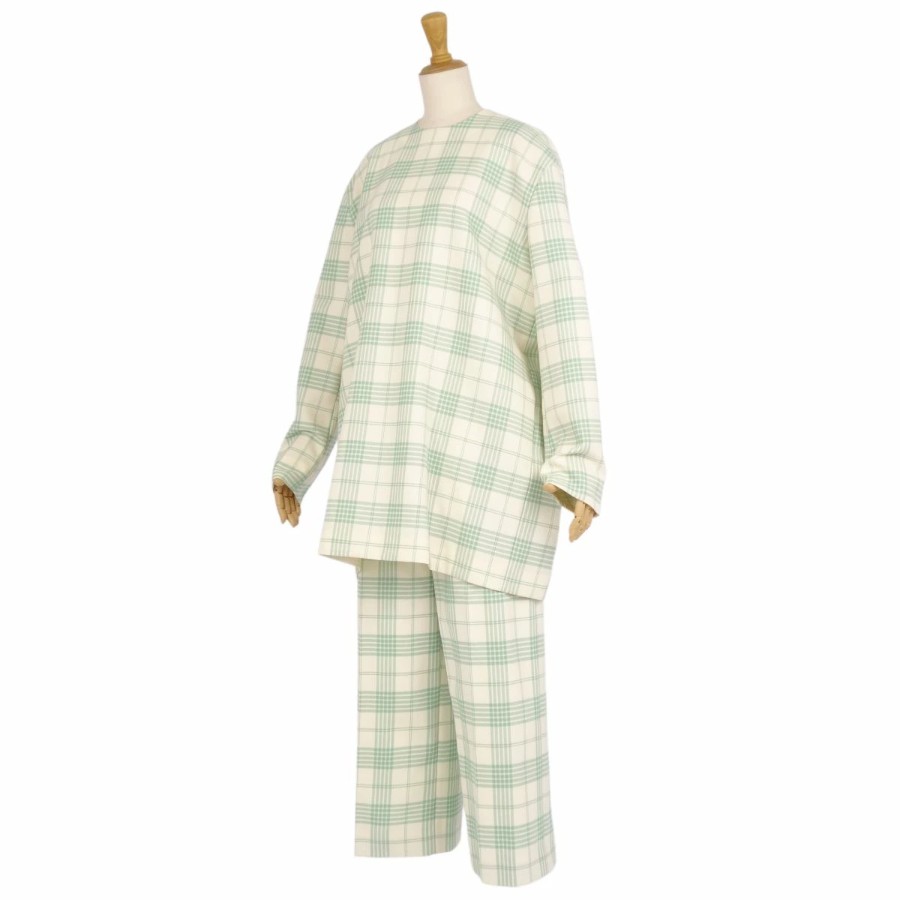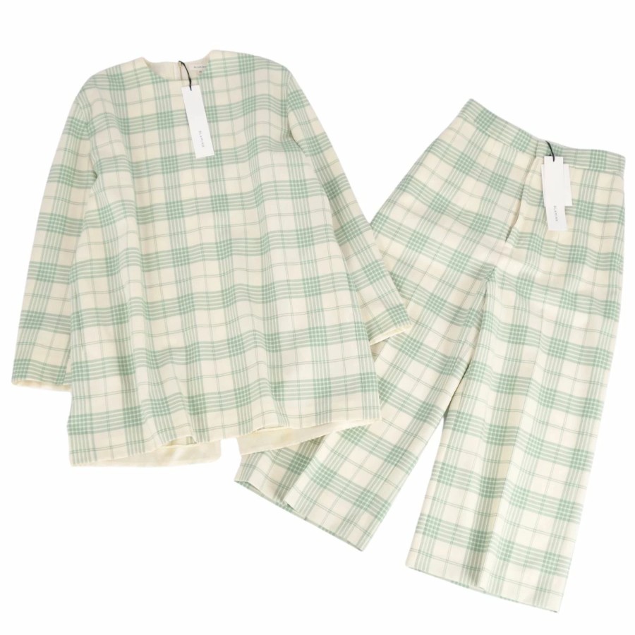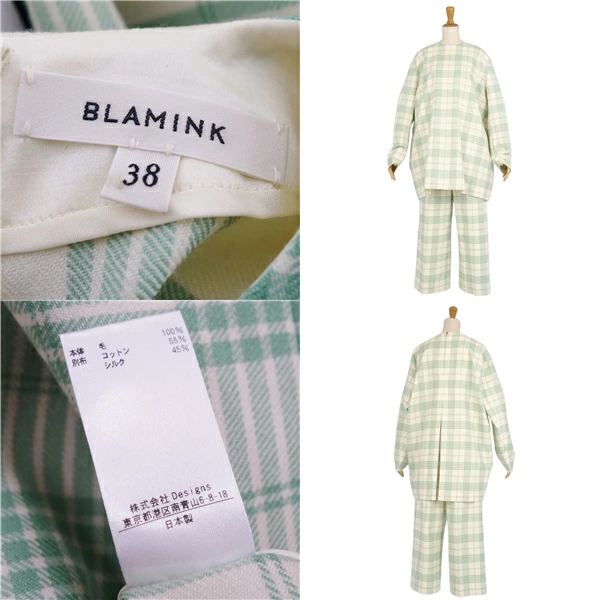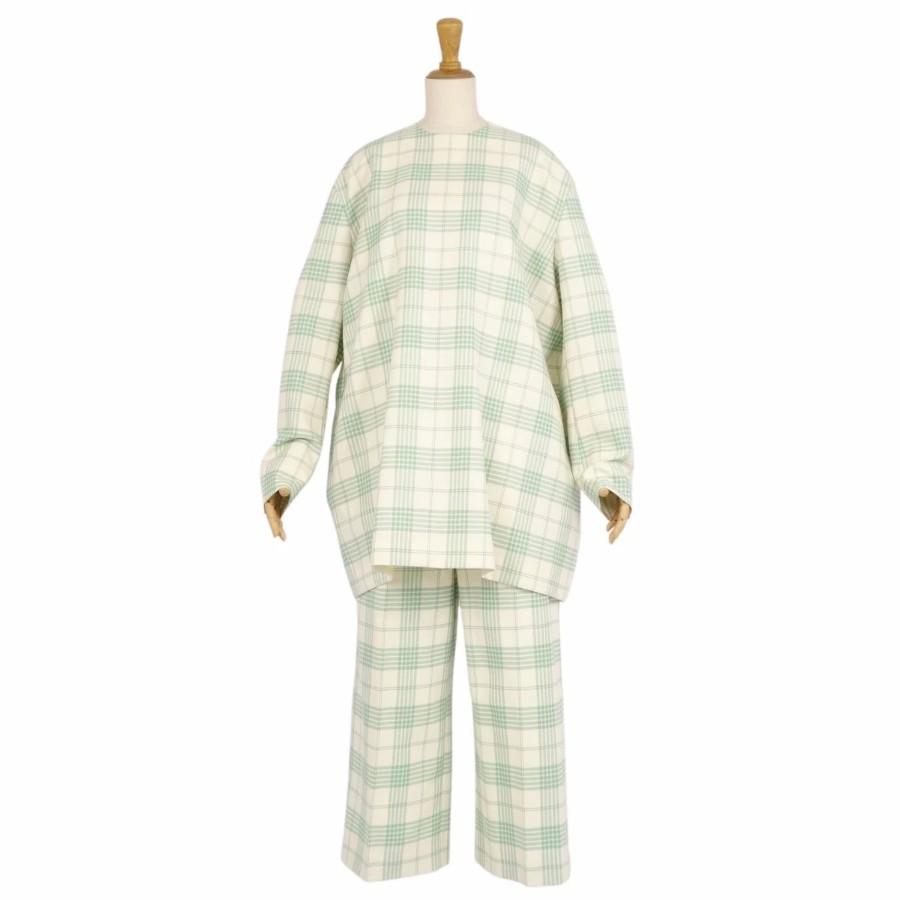 ブラミンク BLAMINK セットアップ パンツスーツ ウール チェック シャツ パンツ レディース グリーン サイズ38(M相当)