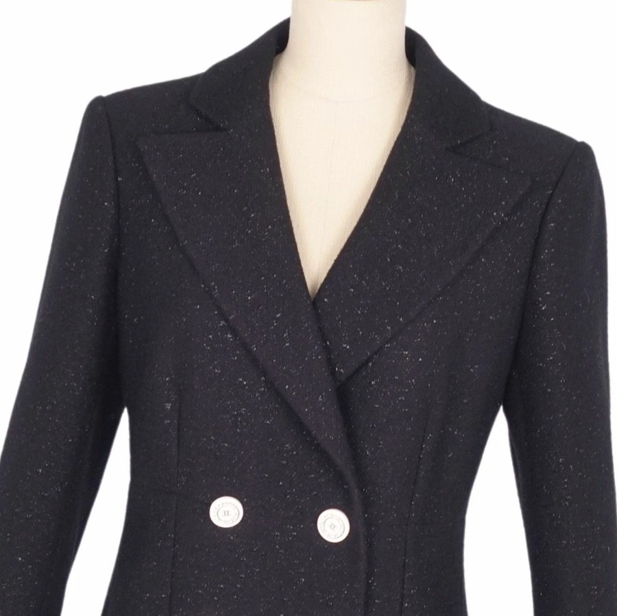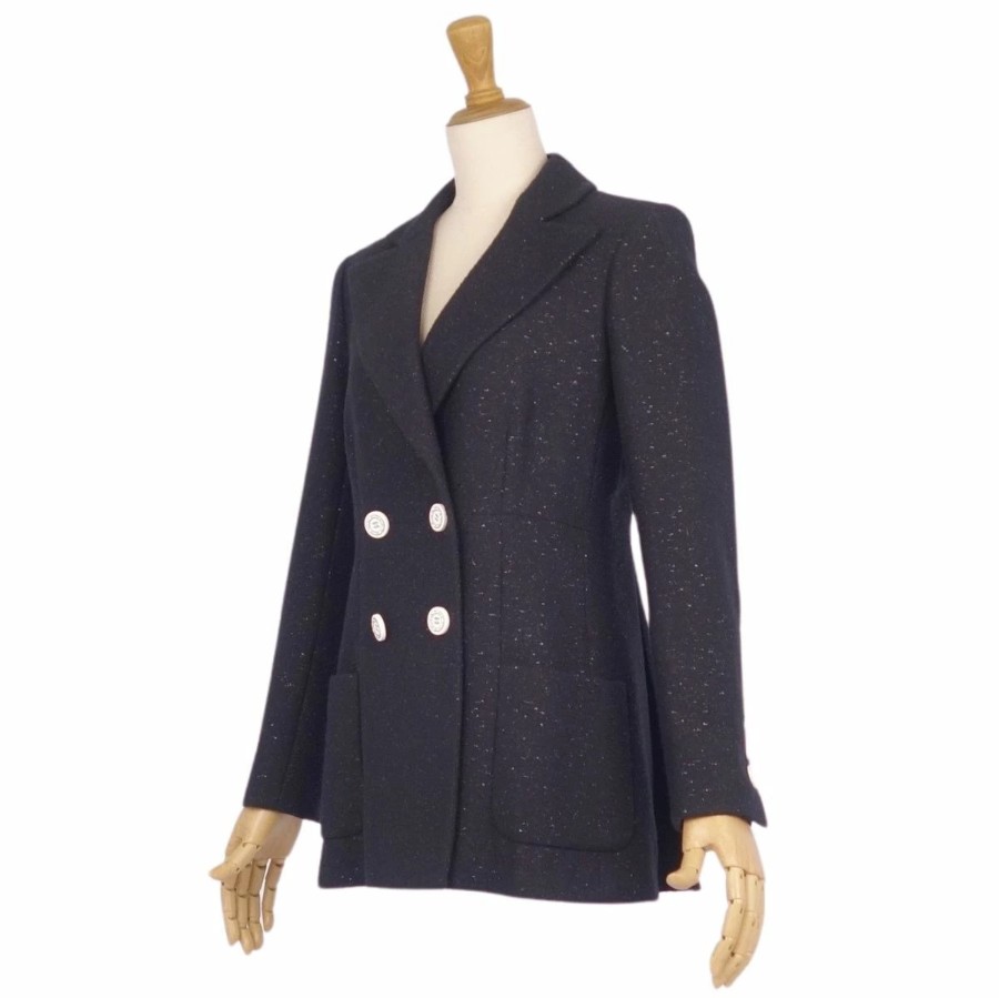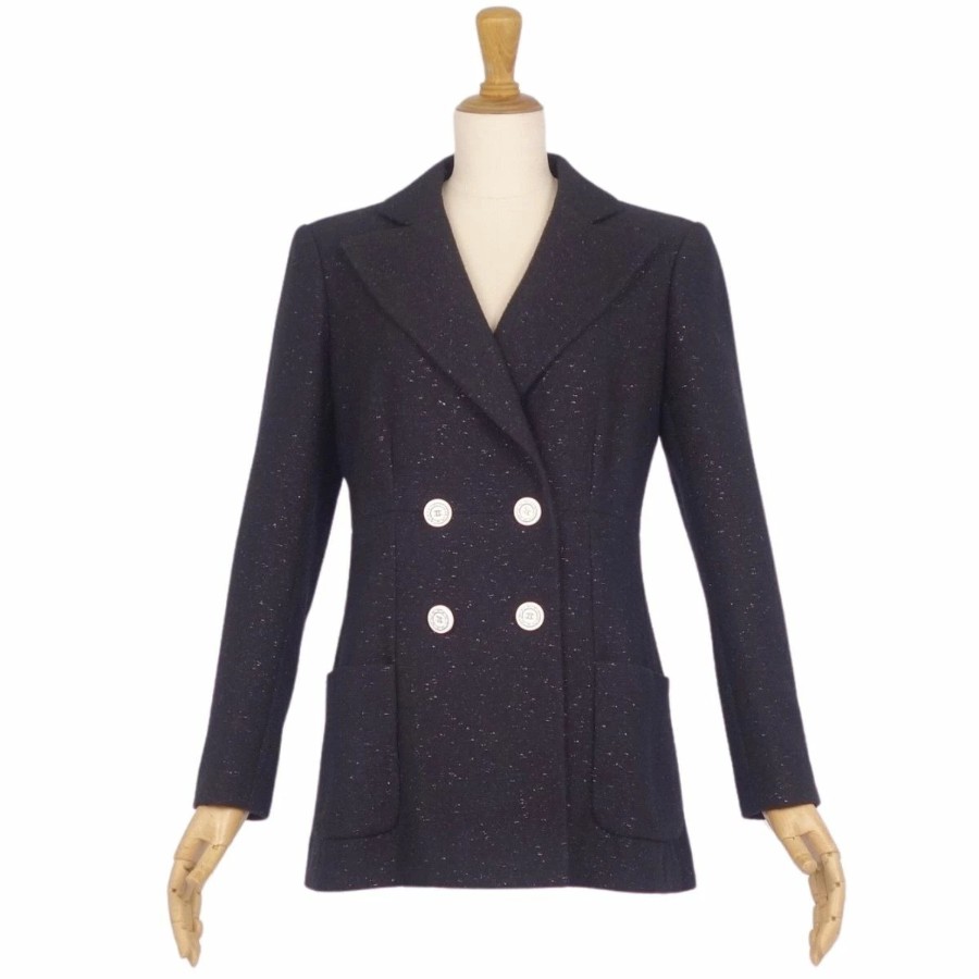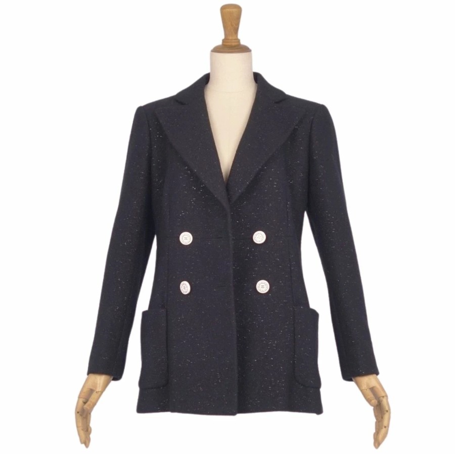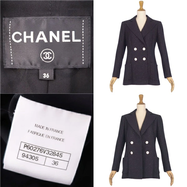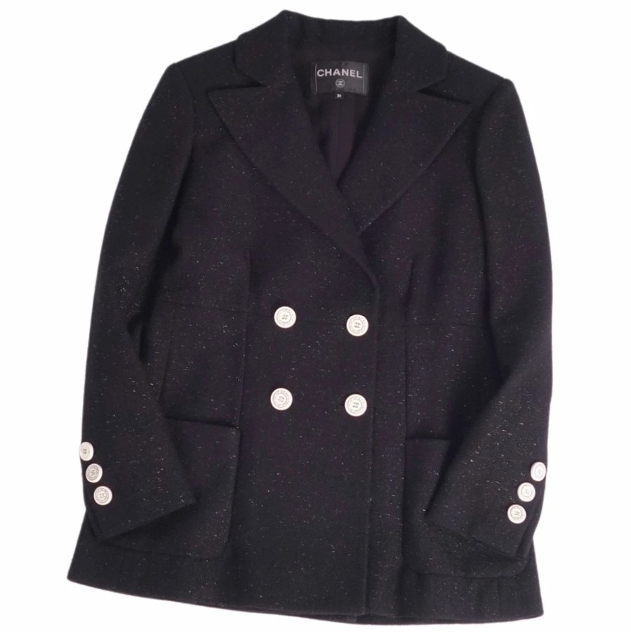 シャネル CHANEL ジャケット 19C P60276 テーラード ウール ツイード ココマークボタン アウター レディース フランス製 ブラック サイズ36(S相当)