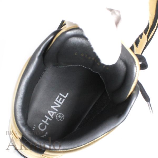 CHANELのロゴがバックプリントされたハイカットスニーカーです。
