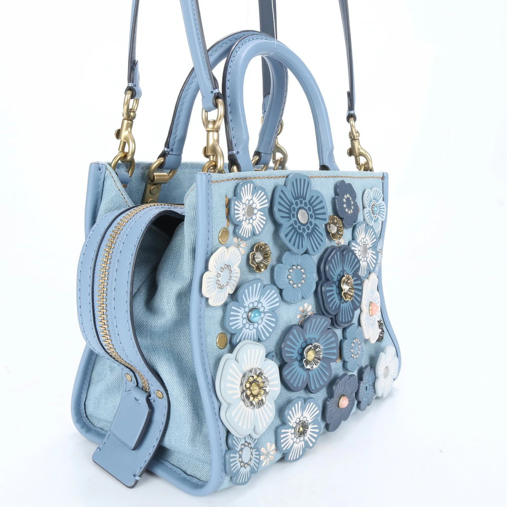 Like new Coach Rogue 25 with Tea Rose Denim and Leather 68225, 2-Way Shoulder Bag (Crossbody/Handbag) for Women, RRM CC23-3