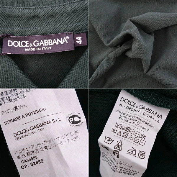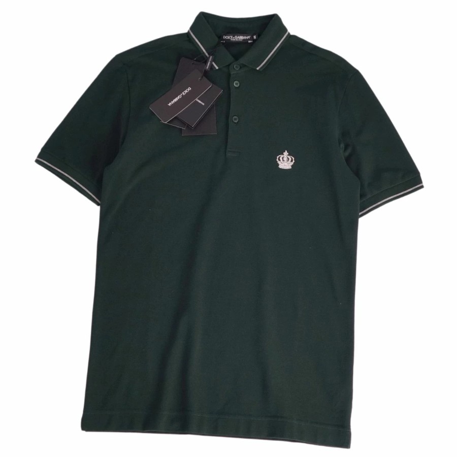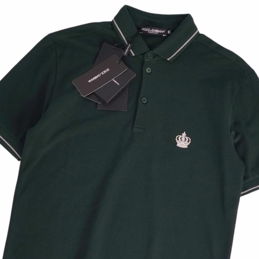 ドルチェ&ガッバーナ DOLCE&GABBANA シャツ ポロシャツ 鹿の子 ショートスリーブ 半袖 コットン トップス メンズ イタリア製 グリーン サイズ44(S相当)