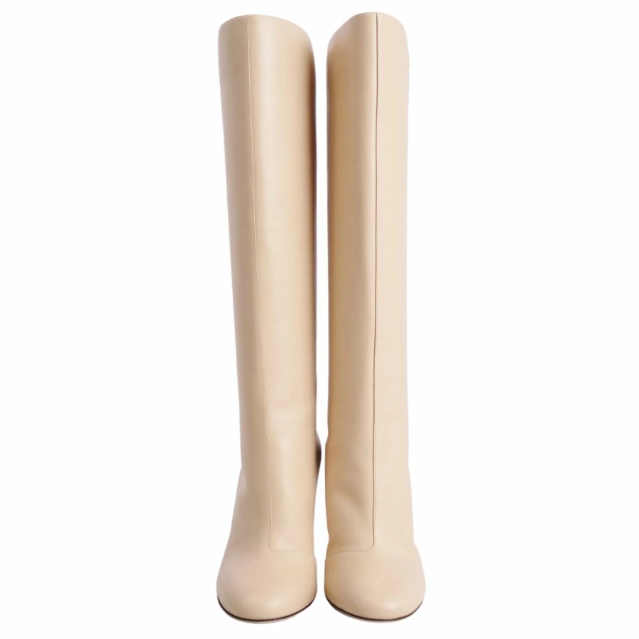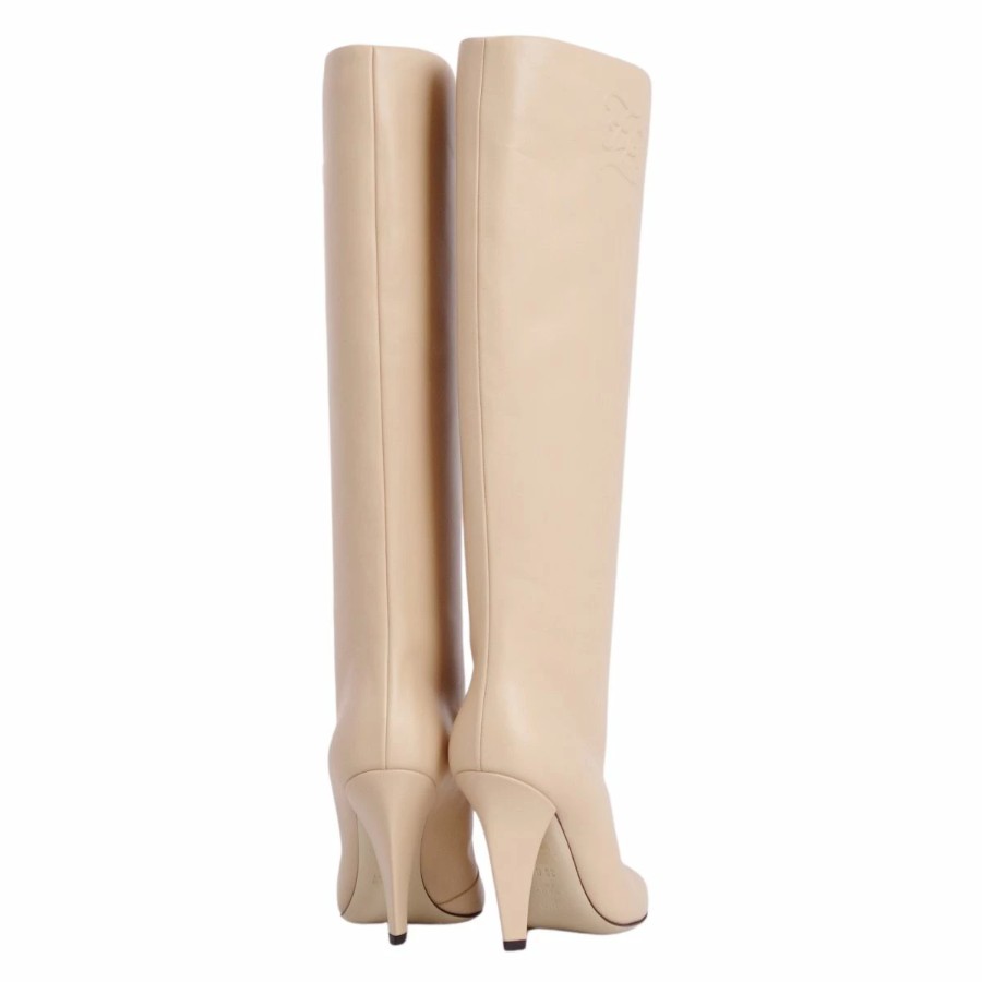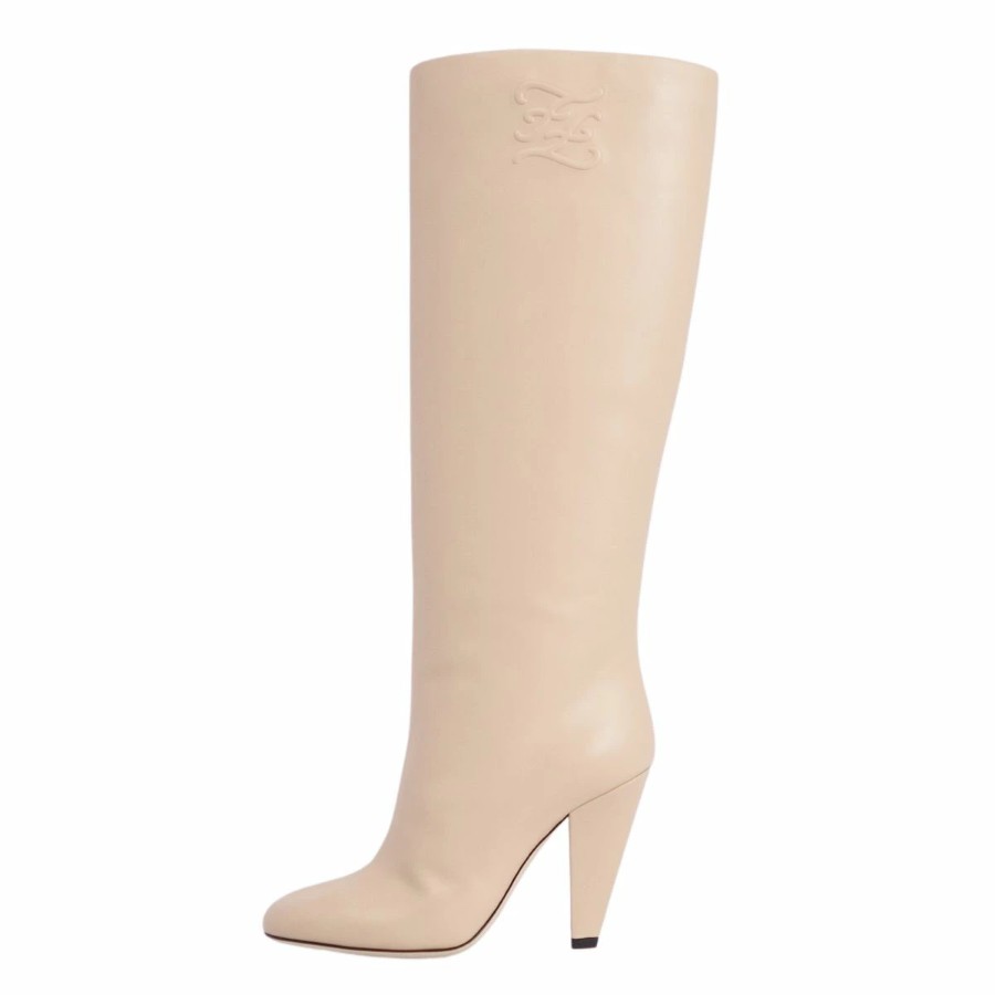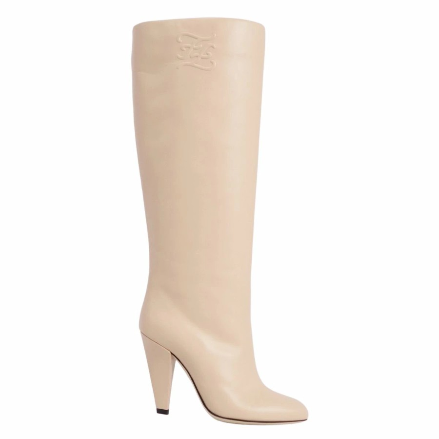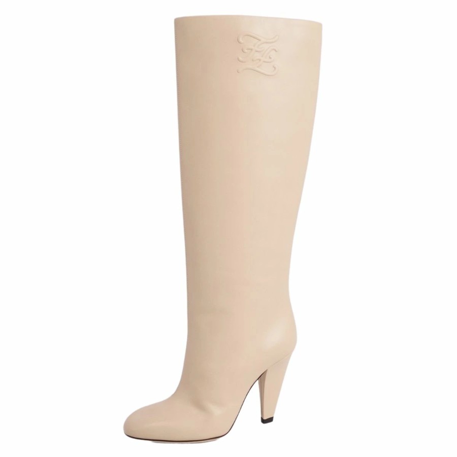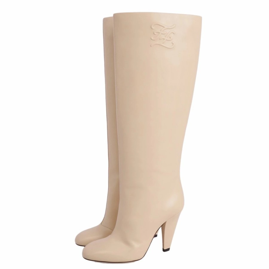 フェンディ FENDI ブーツ ロングブーツ FFロゴ レザー ヒール シューズ 靴 レディース イタリア製 ベージュ サイズ35D(22cm相当)