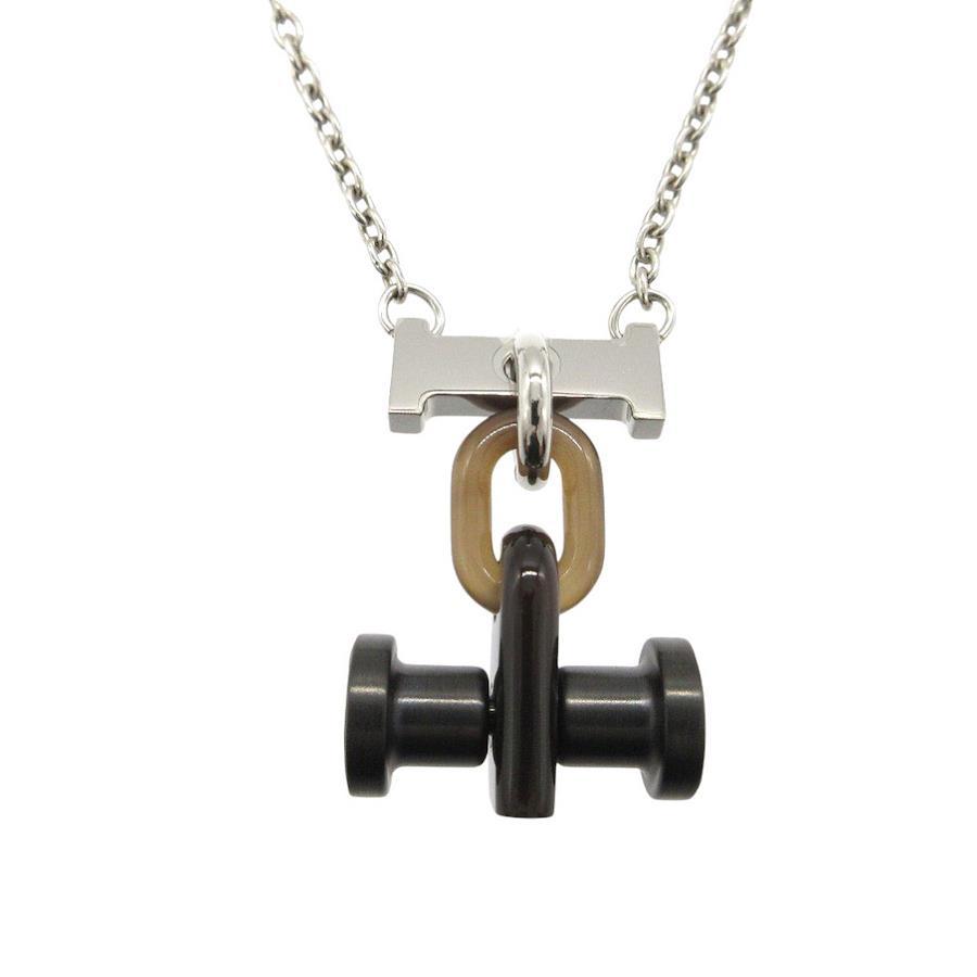 Like new Hermès Mobile H Necklace, Metal/Buffalo Horn, Silver/Brown, 0372 [Pre-owned] HERMES
