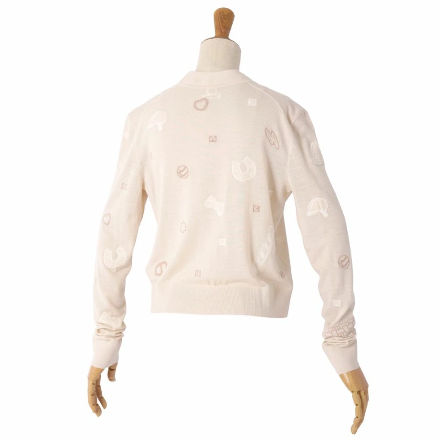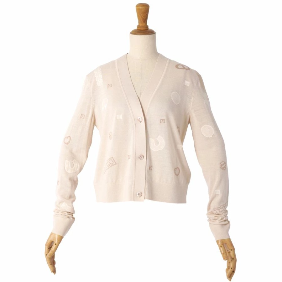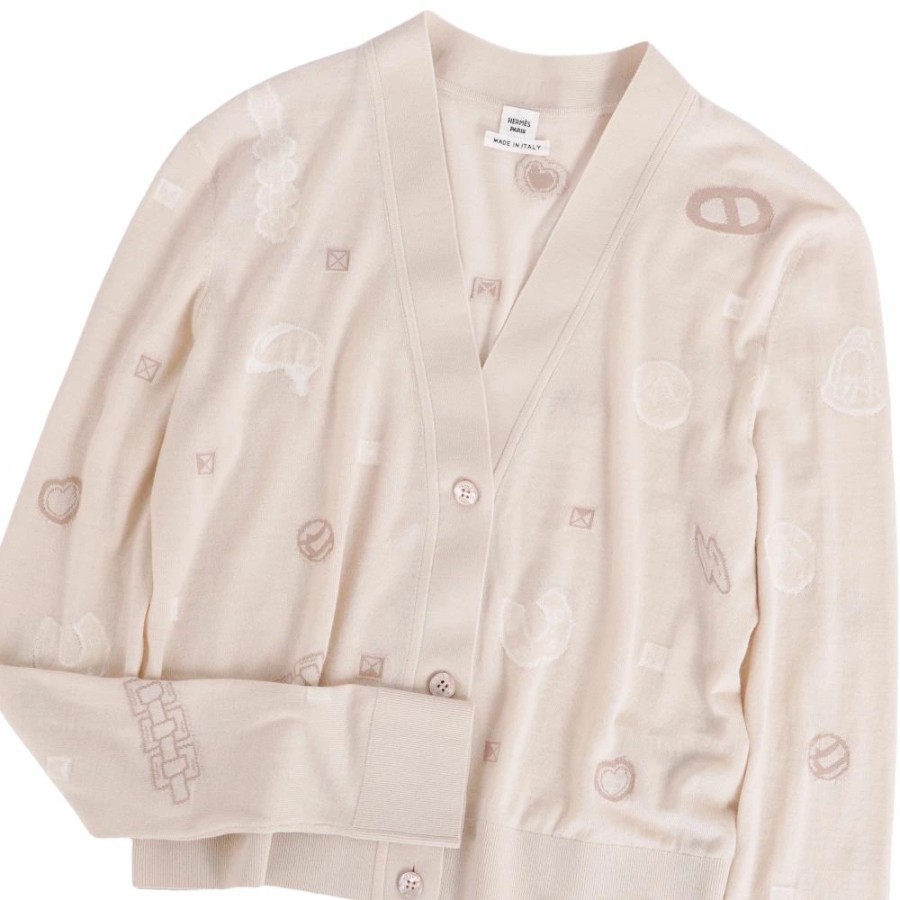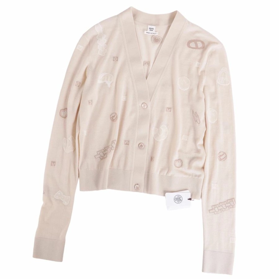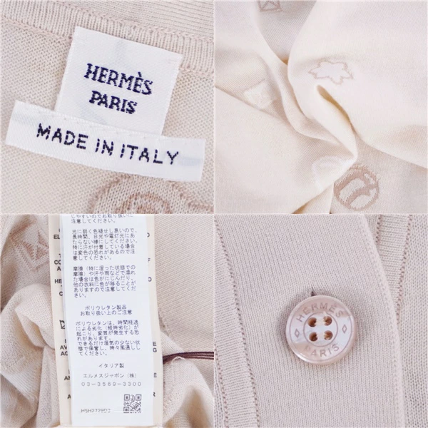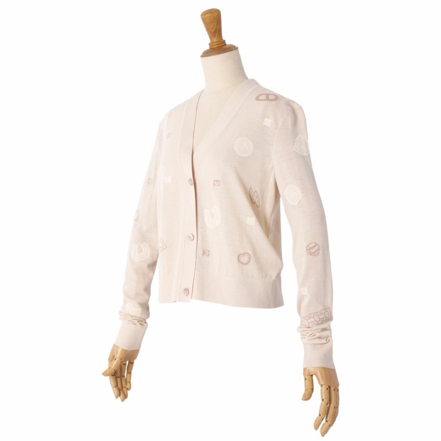 [Like New] Hermes HERMES Cardigan 25AW Candy Libris Bandana Knit Wool Top Women's Made in Italy Size 36 (equivalent to S) Beige [Used]