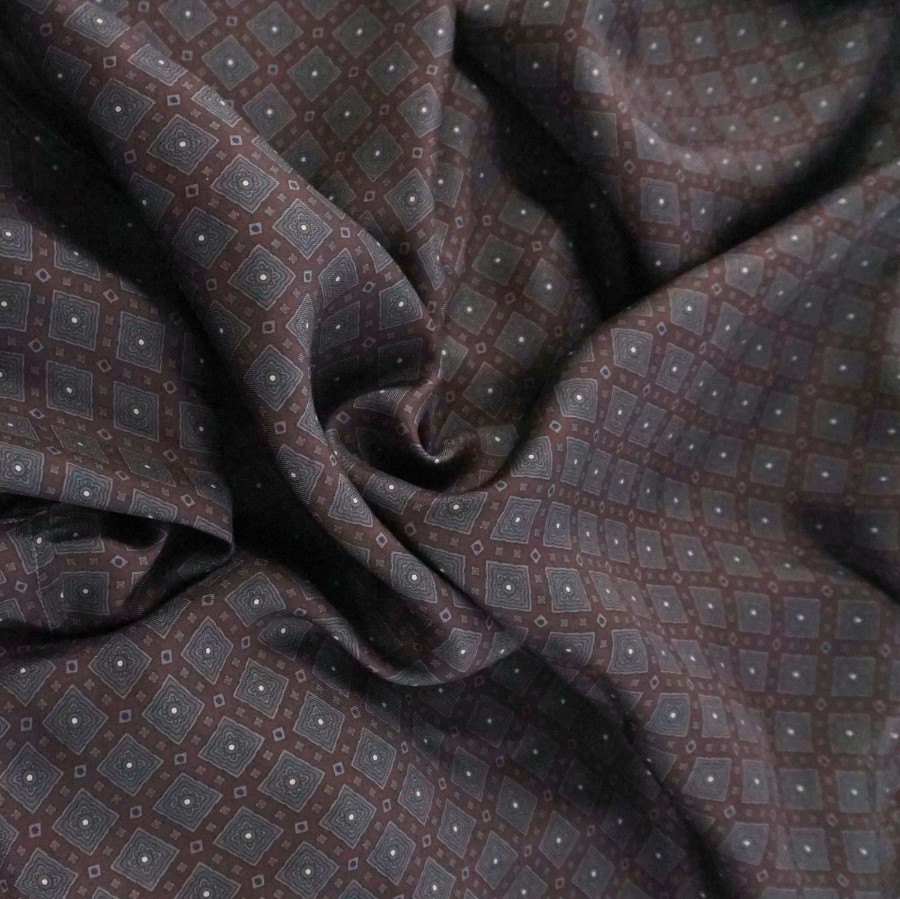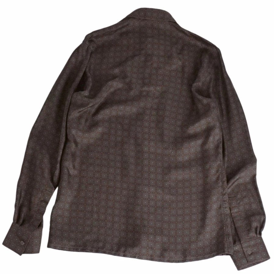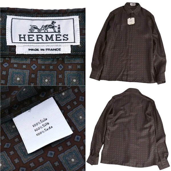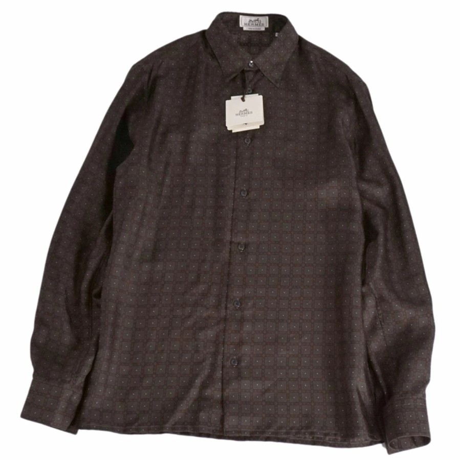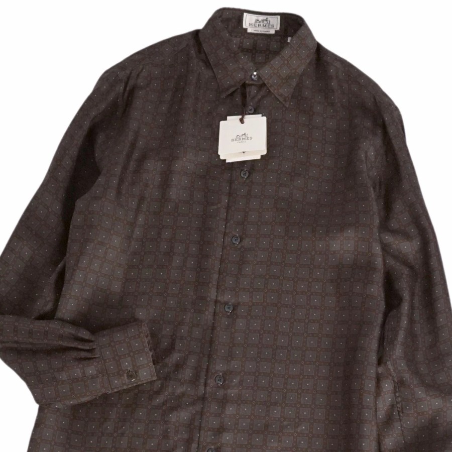 エルメス HERMES シャツ ロングスリーブ 長袖 総柄 シルク トップス メンズ フランス製 ブラウン サイズ39(15.5)