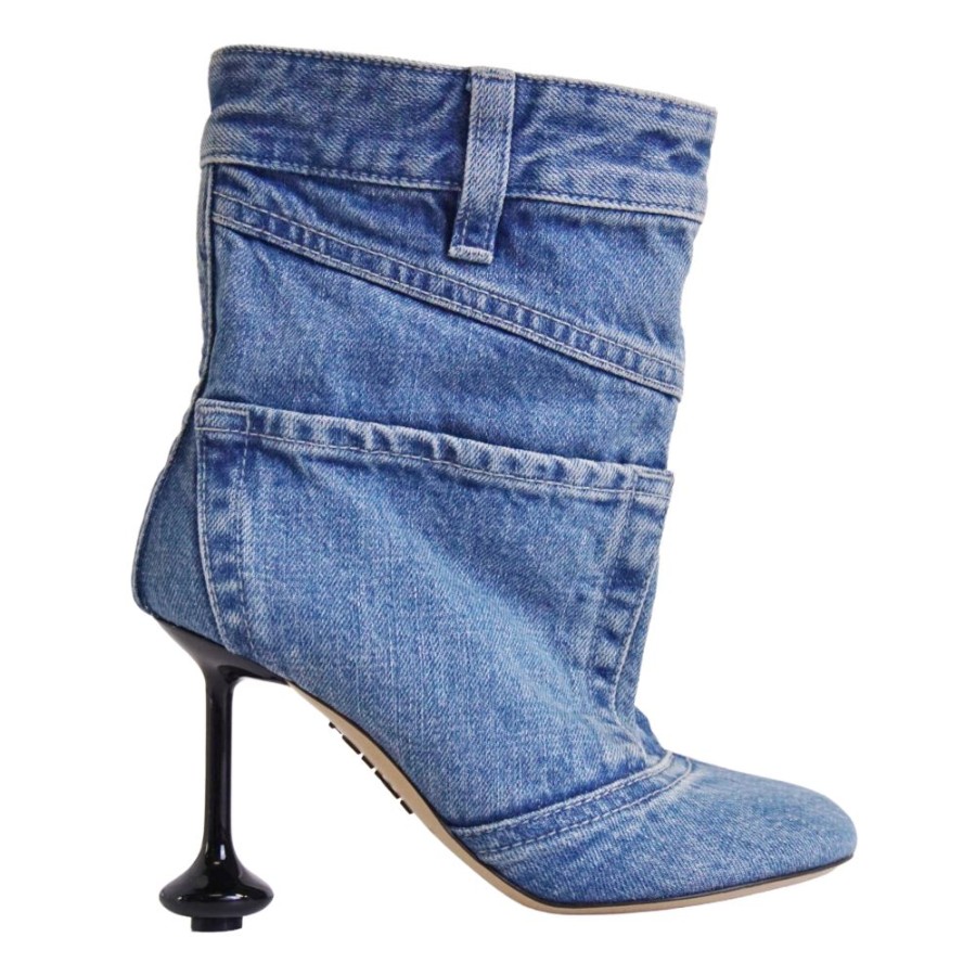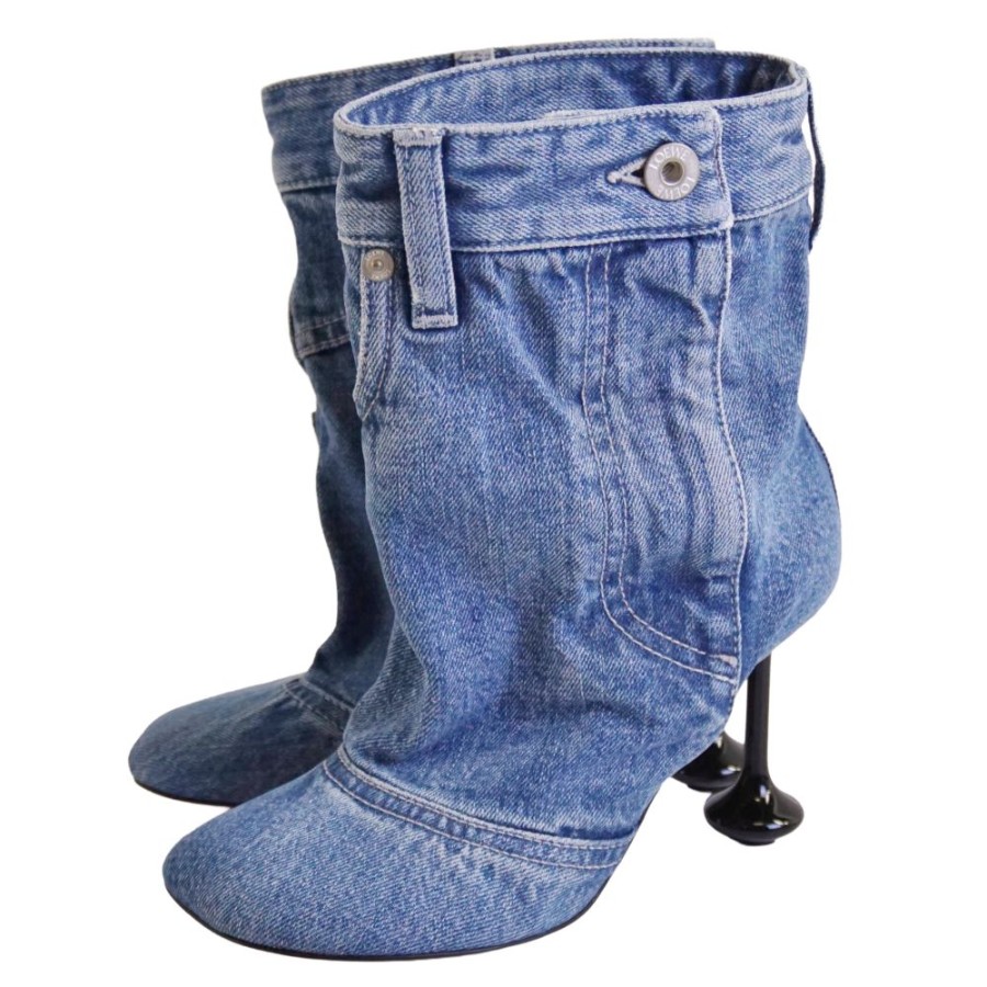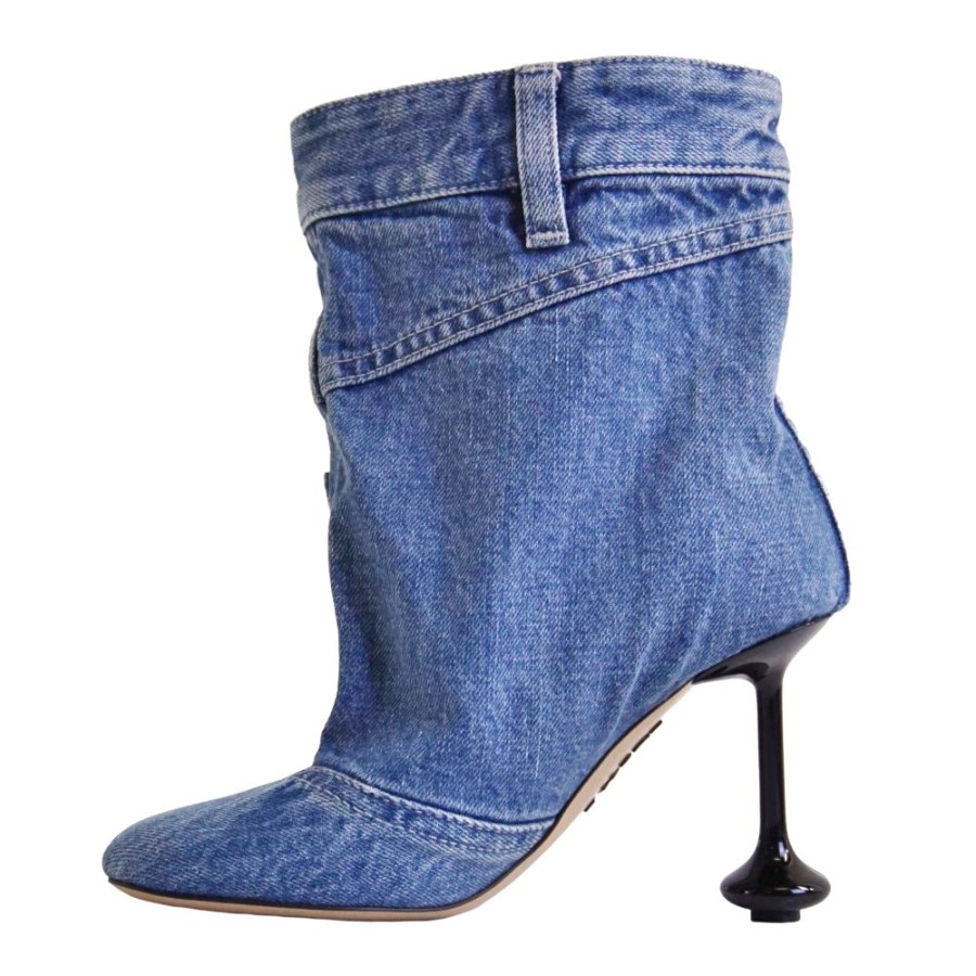 ロエベ LOEWE ブーツ 25SS トイ パンタ 90 ショートブーツ デニム ヒール シューズ 靴 レディース イタリア製 インディゴブルー サイズ38.5(25.5cm相当)