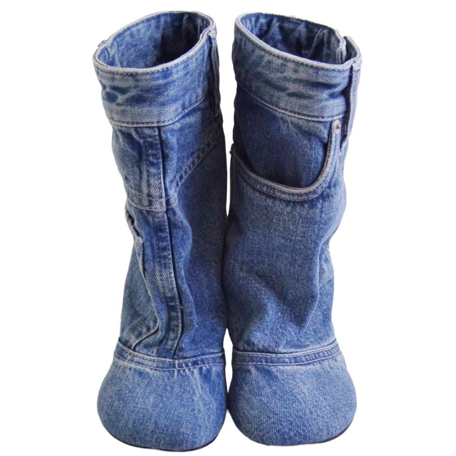 ・ウォッシュドデニム素材を使用した、LOEWE「トイ パンタ 90」ショートブーツです♪