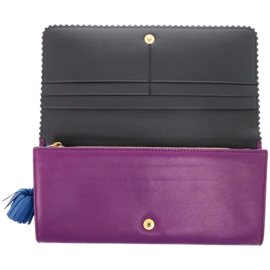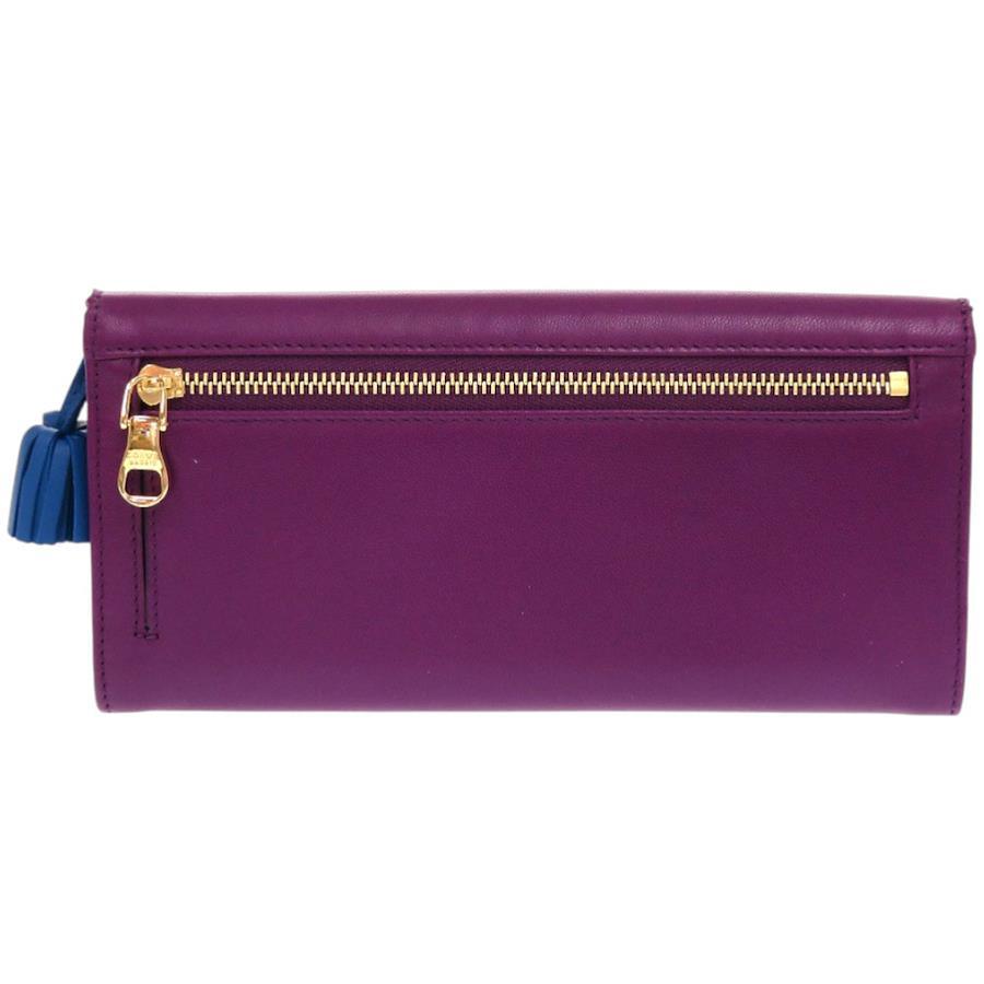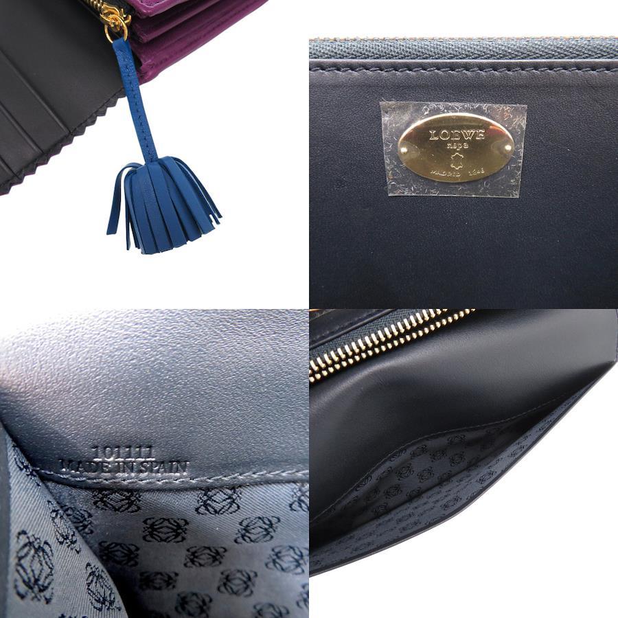 [管理番号]7I0595ZG5W12[ブランド]ロエベ(LOEWE)[タイプ]ラウンドファスナー タッセル[型番]101111[対象]レディース[カラー]パープル/ブルー[金具]ゴールド[モデル]アナグラム[生産国]スペイン[サイズ]W約19cm x H約9.5cmx D約2.3cm[素材]レザー ナッパレザー[仕様]開閉式:スナップボタン内側:カードポケット x 10、札入れ x 4、ファスナー開閉式小銭入れ x 2[付属品]保存箱