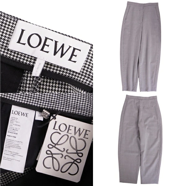 ロエベ LOEWE パンツ ロングパンツ 千鳥格子 ウール ボトムス レディース イタリア製 グレー サイズ38(M相当)