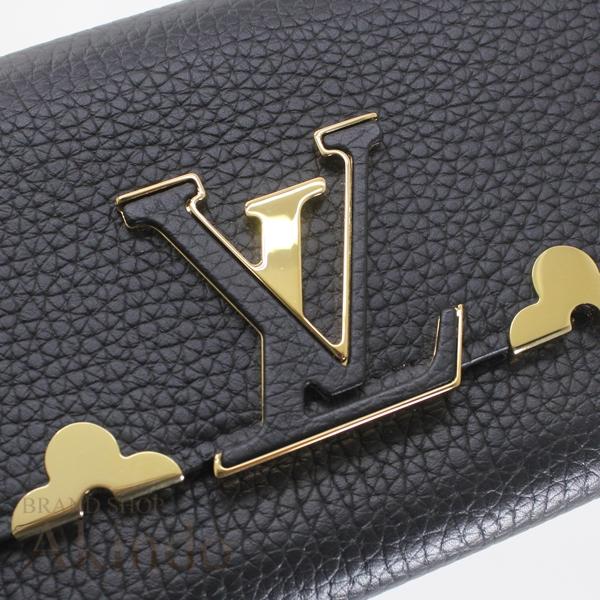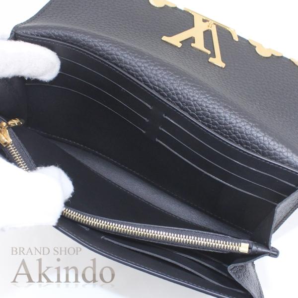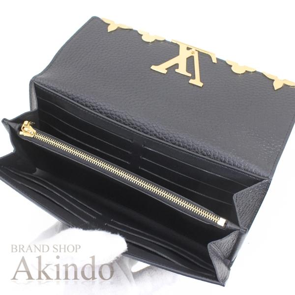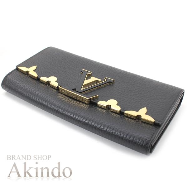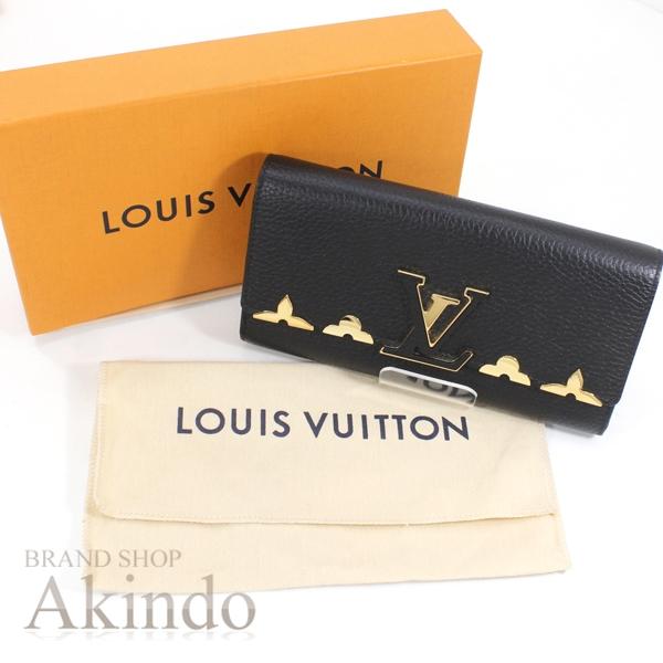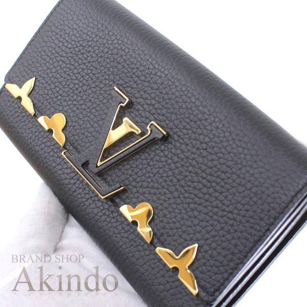 ◆ブランド ルイ・ヴィトン◆商品名 ポルトフォイユ・カプシーヌ フラワー◆型番 M64551◆仕様 二つ折り長財布◆素材 トリヨンレザー◆色目 黒ブラック◆定価 ¥232,100◆程度 SAランク◆サイズ 約W20 × H10 × D3 cm◆付属品 箱・布袋◆ポケット数 小銭入れ×1カード入れ×12 札入れ×2 ポケット×1◆商品詳細ルイ・ヴィトンを象徴するバッグ「カプシーヌ」と相性抜群のエレガントな財布「ポルトフォイユ・カプシーヌ」。まるで花冠のようなモノグラム・フラワーの装飾を手作業でフラップに施し、フェミニンで洗練された印象に仕上げました。すっきりとしたデザインでありながら日常の必需品をたっぷりと収納できるアイテムです。しなやかなトリヨンレザーを使用し、レザーコーティングが施されたLVシグネチャーをあしらった、「ポルトフォイユ・カプシーヌ」。小銭入れに汚れはありませんがかすかにコインの跡がございます。ほぼ使用されておらず金具も傷なくレザーの状態も新品そのもので新品同様商品です。ICチップ搭載モデル。詳細は写真をご覧下さい。KM3192