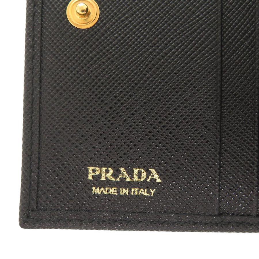 [管理番号]7H0291EZ5m37[ブランド]プラダ(PRADA)[型番]1MV204[対象]レディース[カラー]ブラック[金具]ゴールド[モデル]サフィアーノ[生産国]イタリア[サイズ]W約11cm x H約9cmx D約2.5cm[素材]レザー サフィアーノレザー[仕様]開閉式:スナップボタン内側:ボタン式小銭入れ x 1、札入れ x 1、カードポケット x 3、フリーポケット x 2[付属品]なし