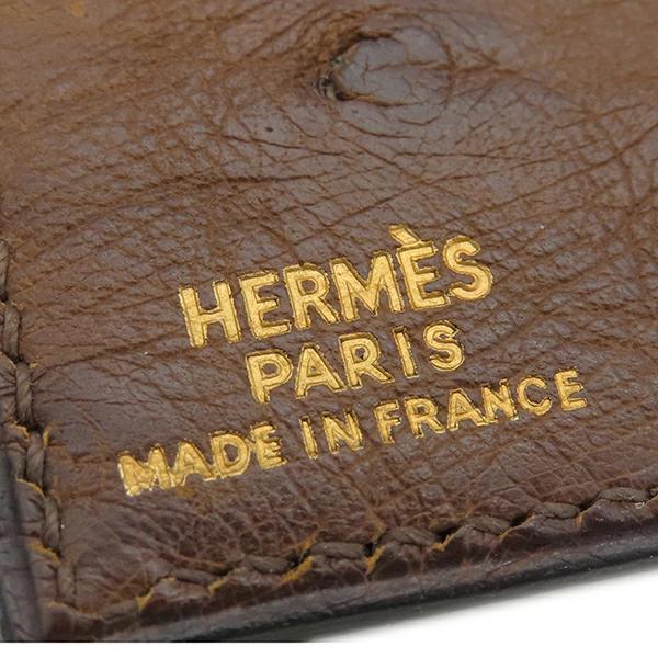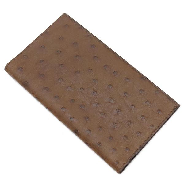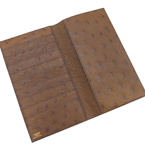 エルメス HERMES 札入れ 長財布 オーストリッチ ブラウン系 茶 二つ折り財布 ○Z刻印 - メンズ定番 人気 美品 【中古】