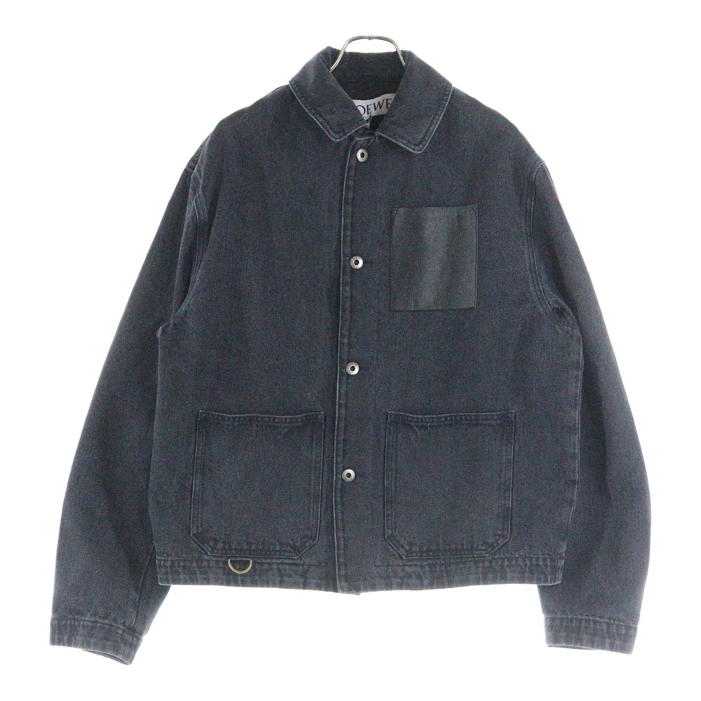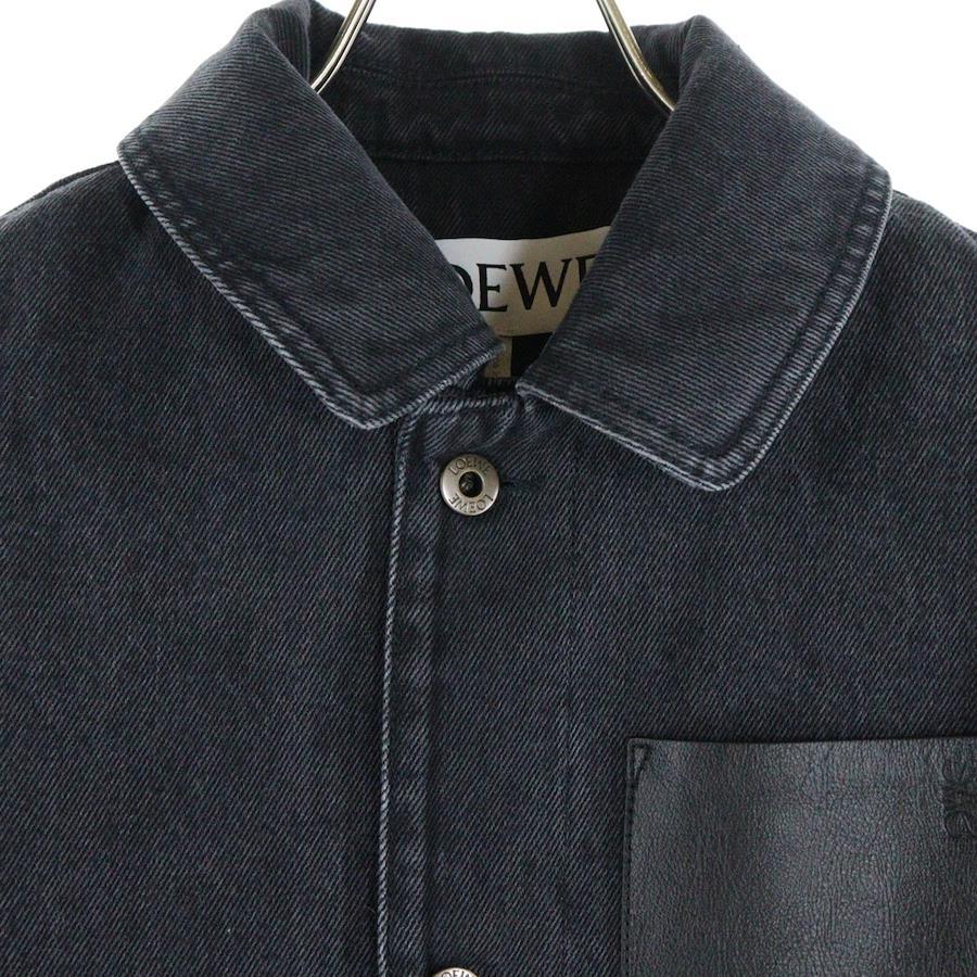 [モデル]24SS WORKWEAR JACKET IN DENIM レザー切り替え ワークウェアジャケット ブラック H526Y50W23