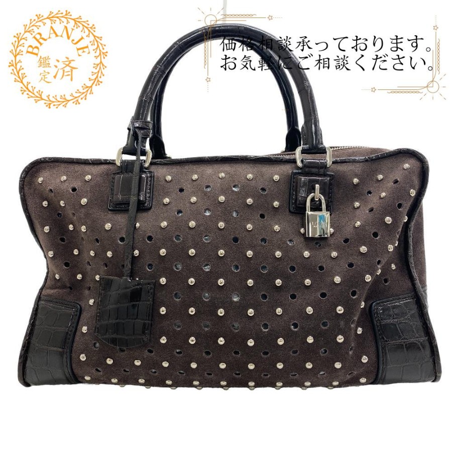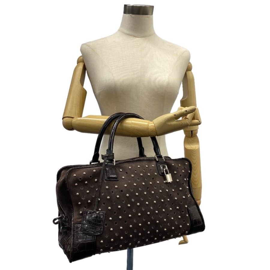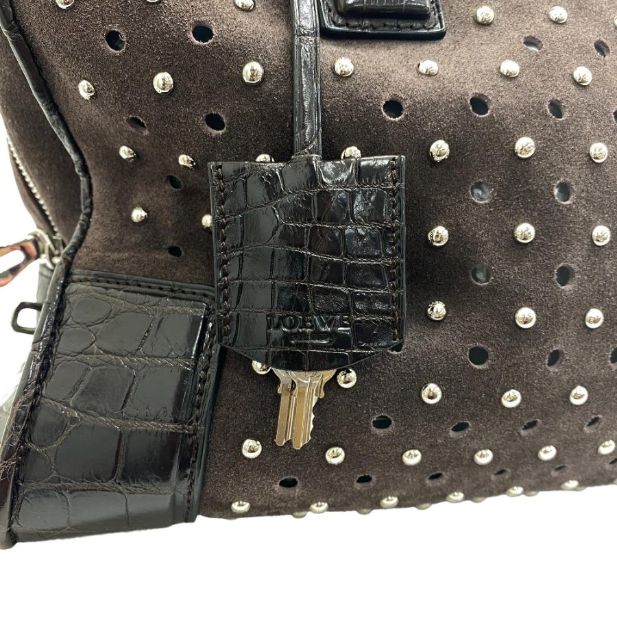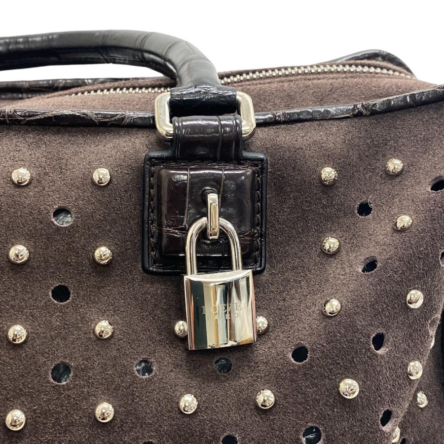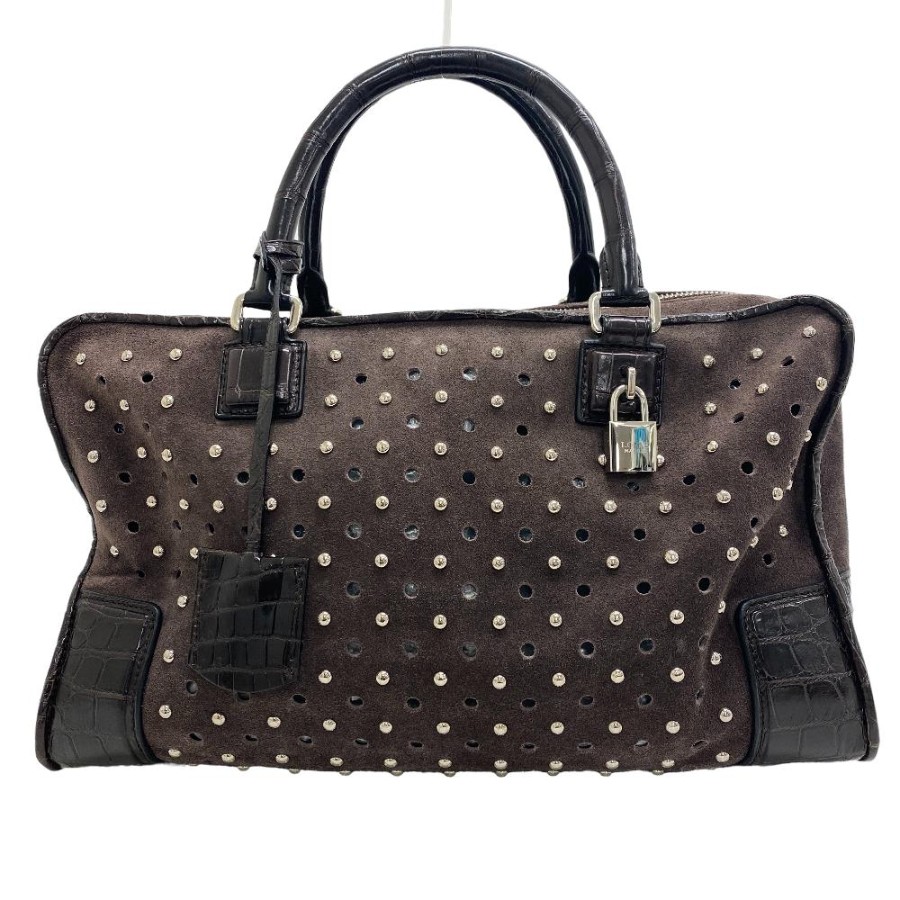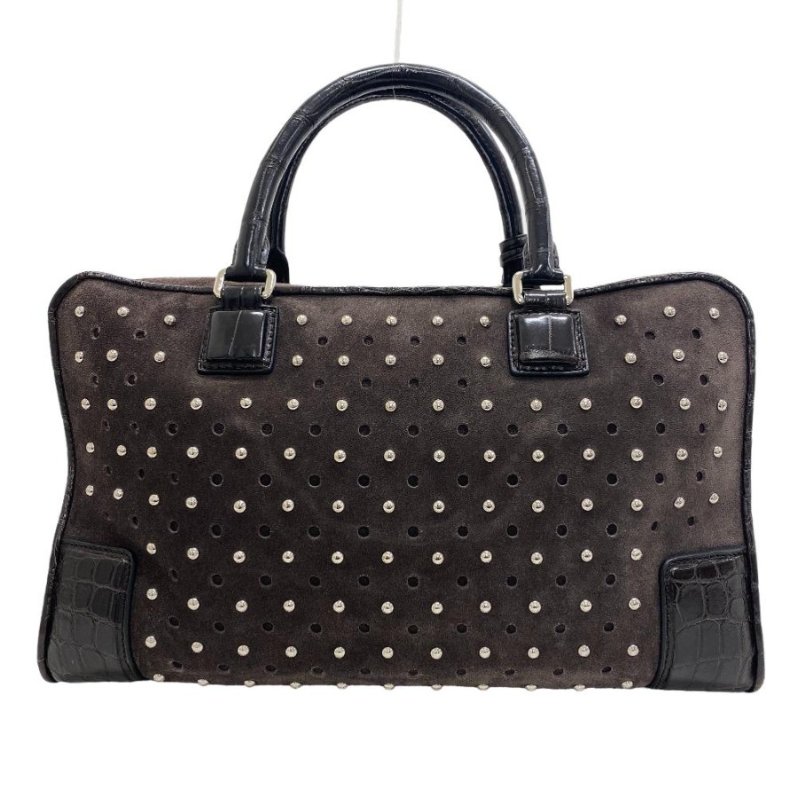 LOEWE Amazona 36 Studded Handbag, Brown, Women's.