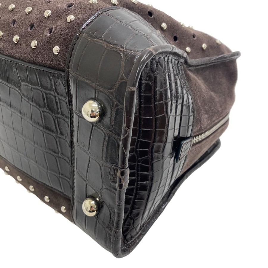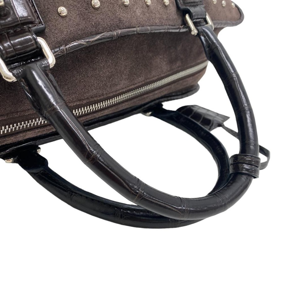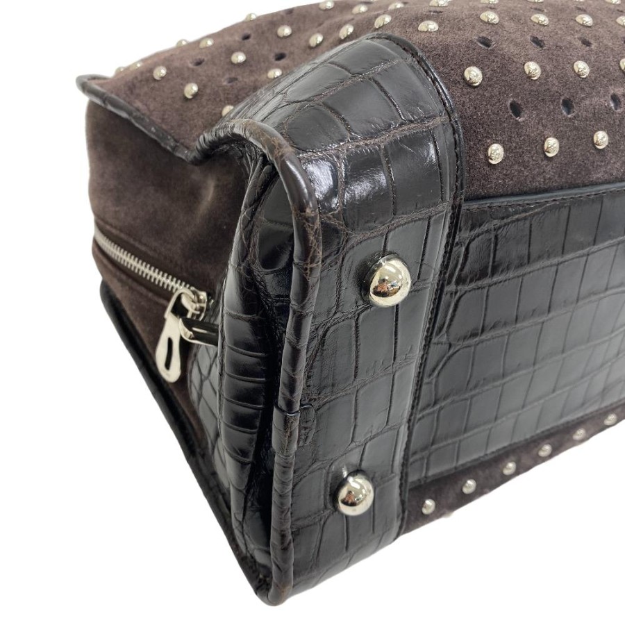 スタッズ ハンドバッグ ブラウン レディース