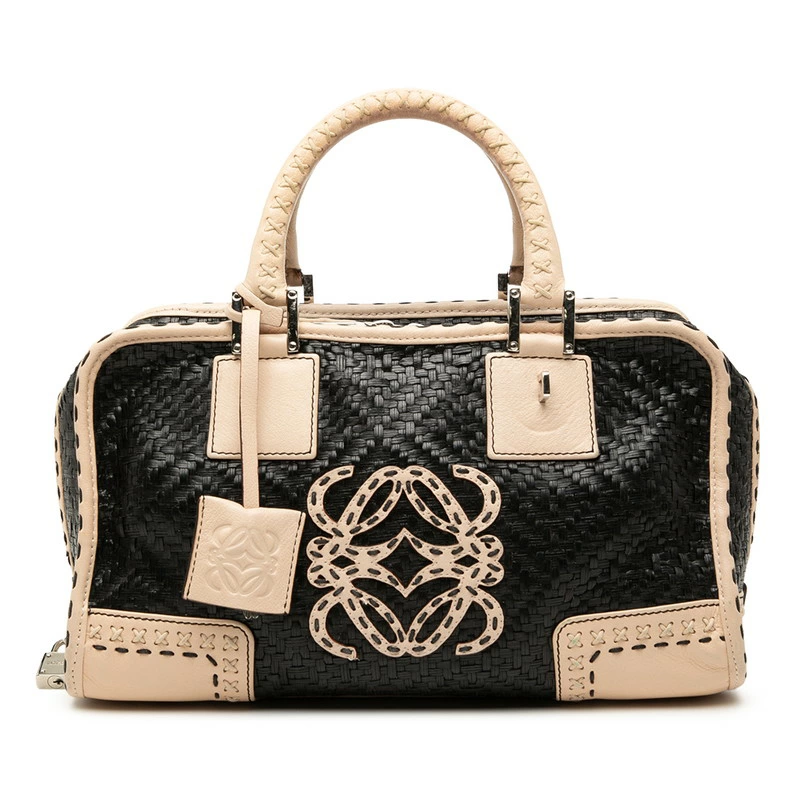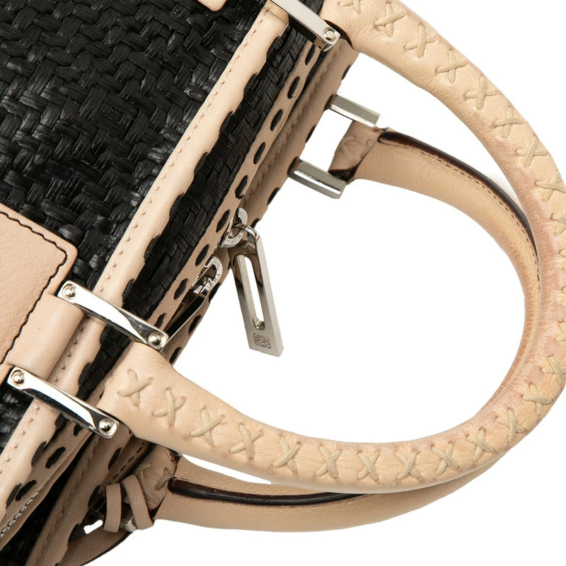 - ロエベ アナグラム ハンドバッグ ブラック ベージュ レザー レディース LOEWE 【中古】