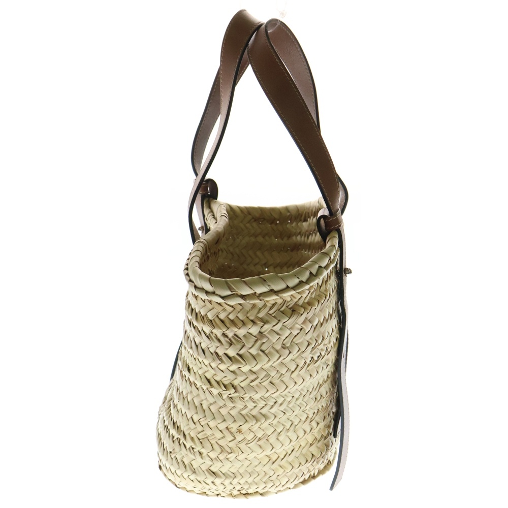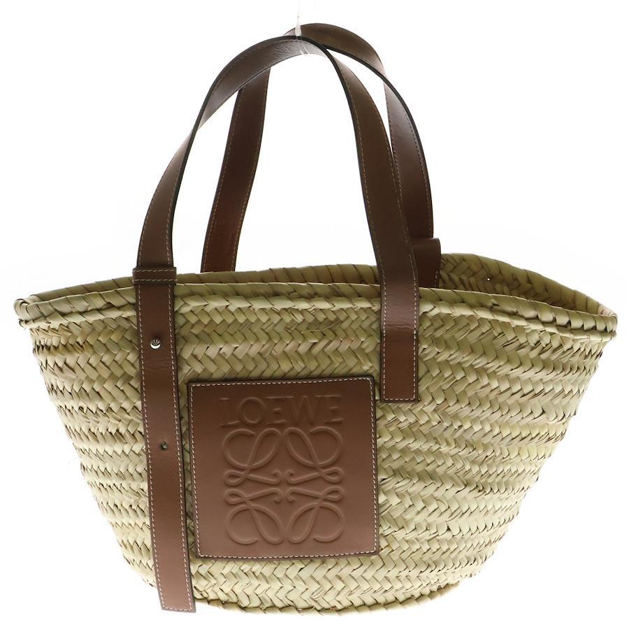 [モデル]アナグラム カゴバック ハンドバッグ トートバッグ ベージュ×ブラウン シルバー金具 ラフィア