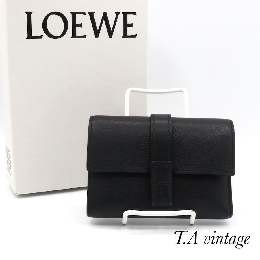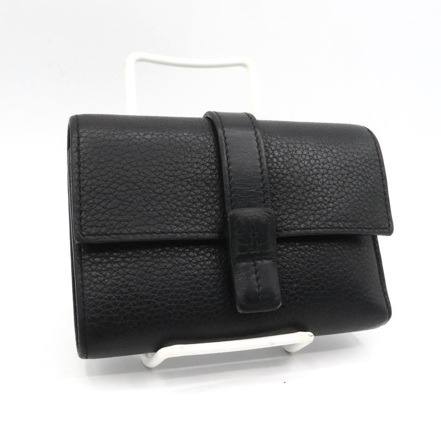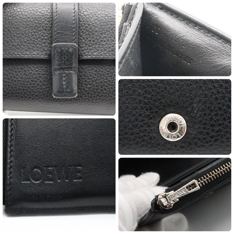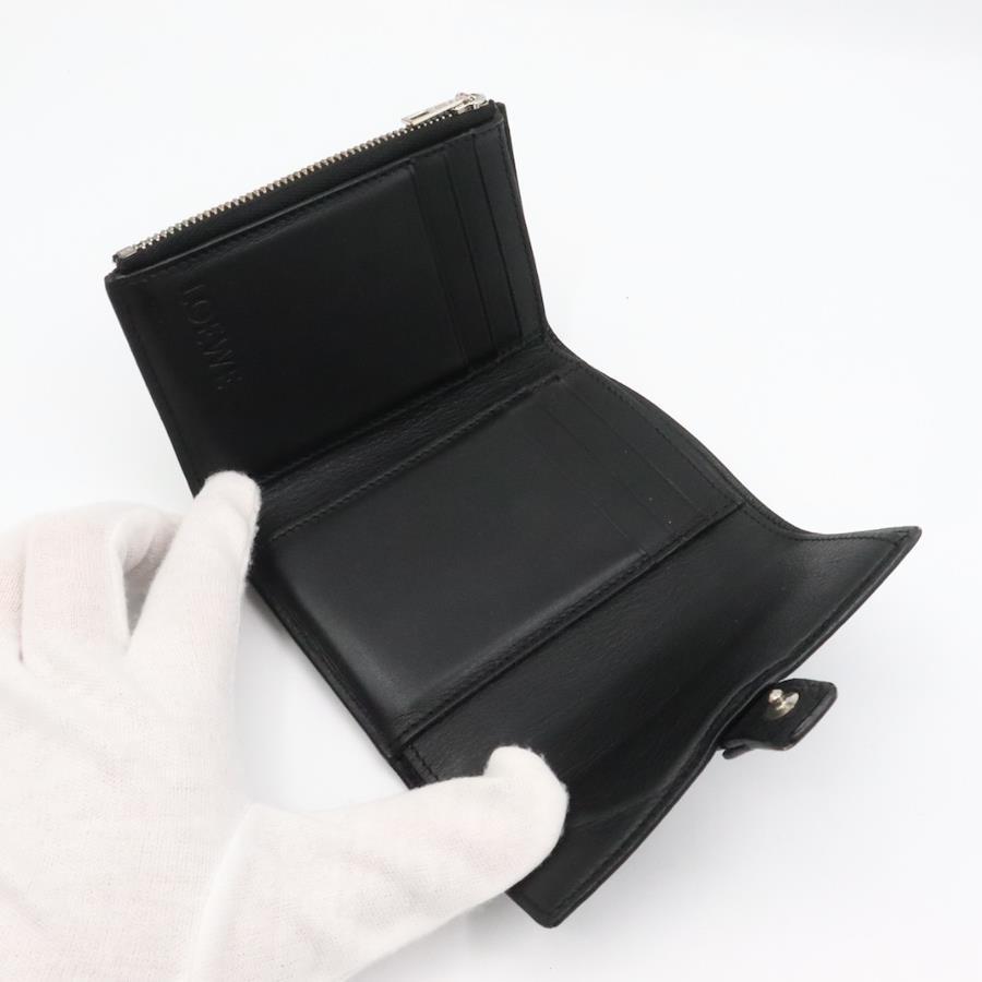 品名 ロエベ アナグラム レザー コンパクト ウォレット 折り財布 ブラック シルバー金具