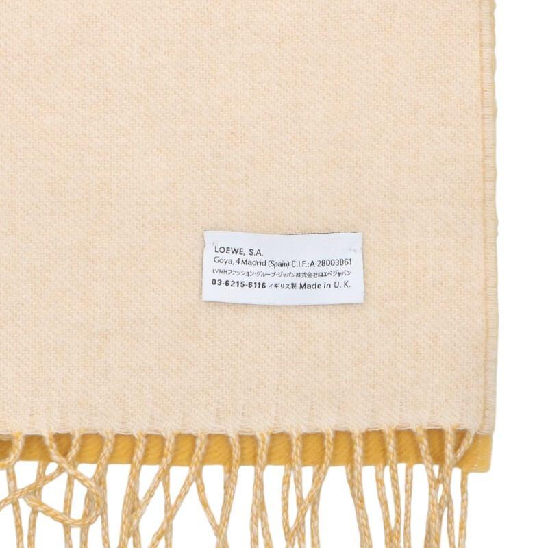ランク:B (使用感がある商品)状態備考:全体的に若干の毛羽立ちがありますブランド:ロエベサイズ:-色:イエロー調実寸:幅28cm 全長約190cm重さ:-素材:ウール90%、カシミヤ10%付属品:なしその他特徴:-管理番号:15272-251025-0238