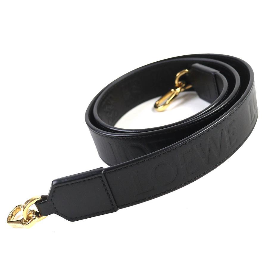 LOEWE Anagram Logo Leather Shoulder Strap in Black Leather