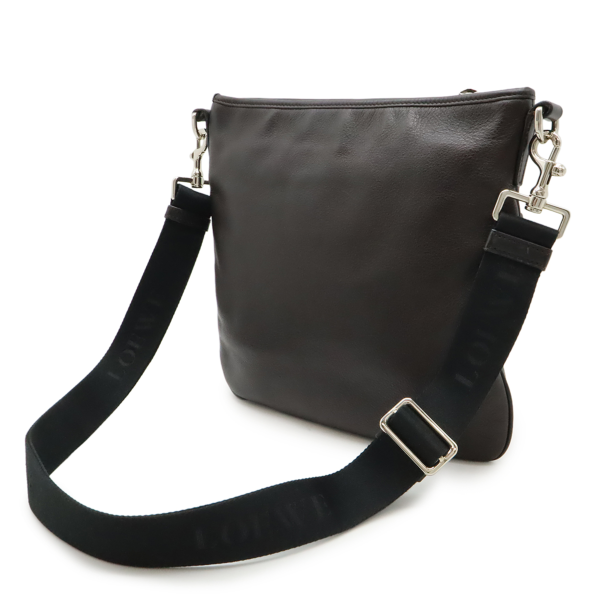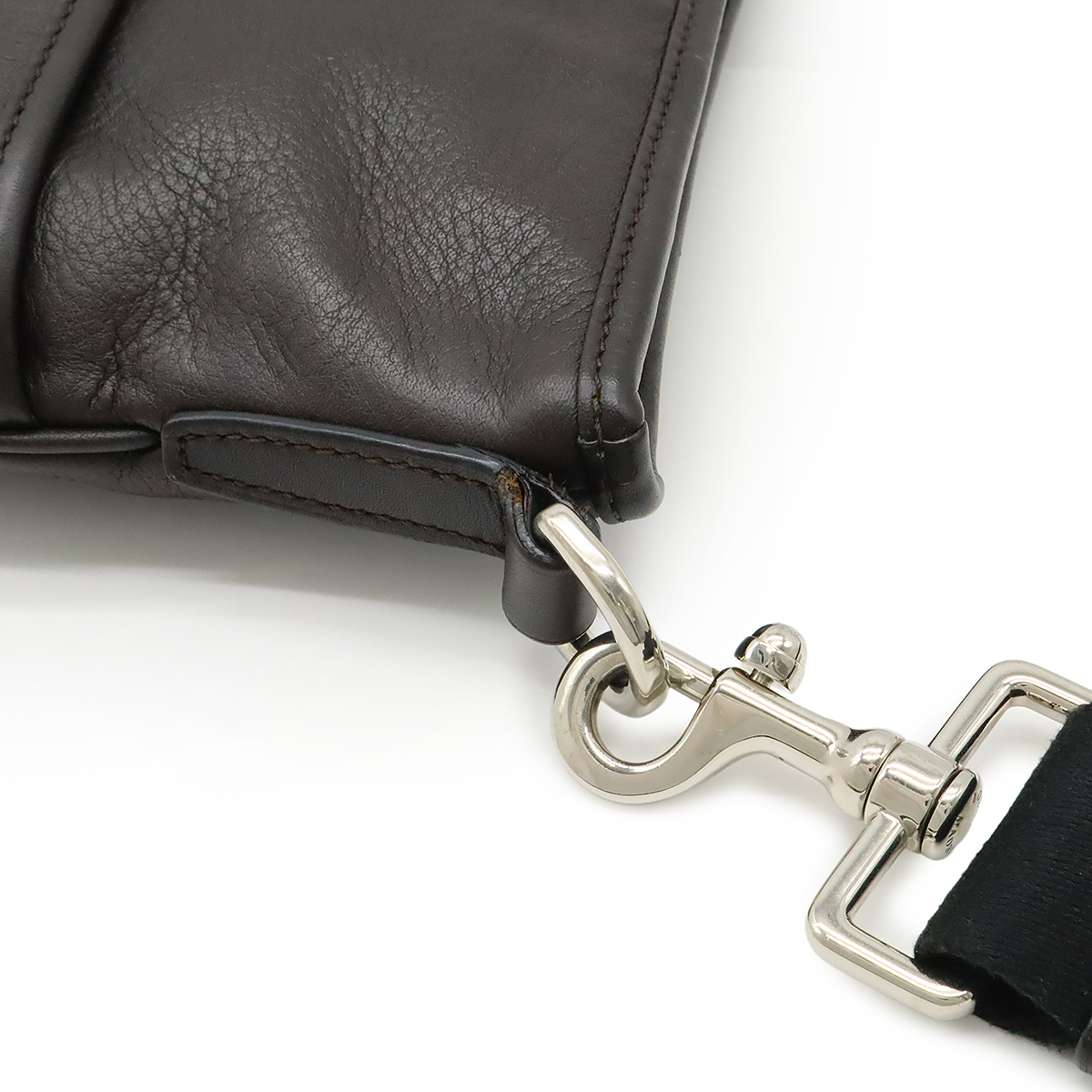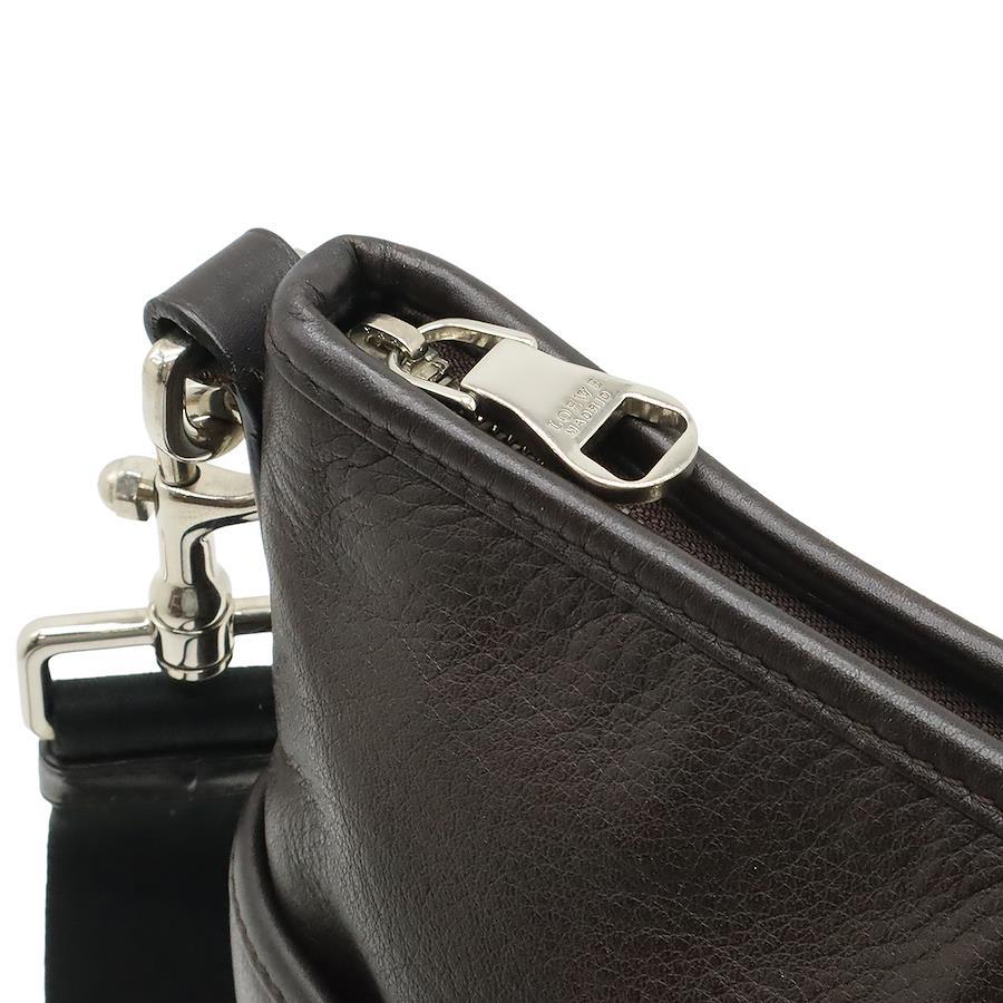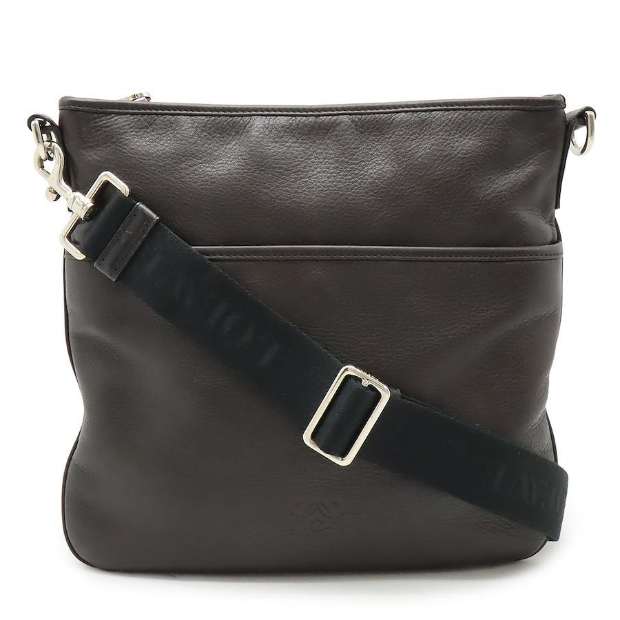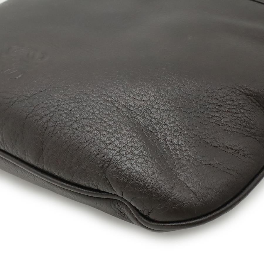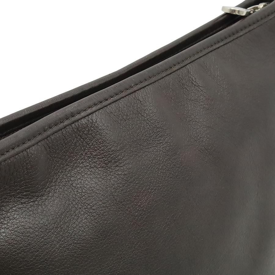 【商品説明】[サイズ]W30cm H24.5cm D2cm ショルダー最長約158cm(調節可、金具含む)[材質]レザー[カラー]ダークブラウン[仕様]外側ポケット1、内側ファスナーポケット1[付属品]保存袋[重さ]約590g