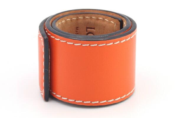 ロエベブレスレットアナグラムスラップスモール119.19.336オレンジレザー中古アクセサリー小物腕輪メンズレディースLOEWE
