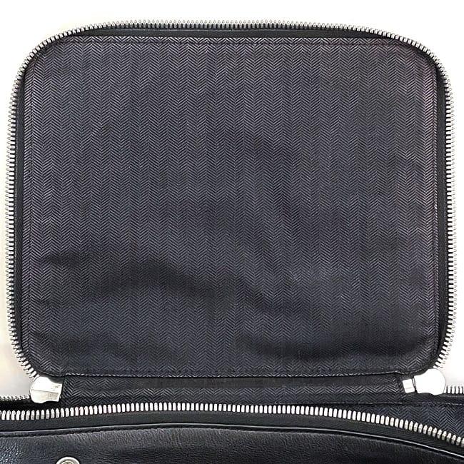 詳細説明:表面に薄傷、コバにひび割れ、サイドポケット付近や角に擦れ、フラップ内側の縁に色褪せなど使用感はございますが非常に綺麗なお品物です。