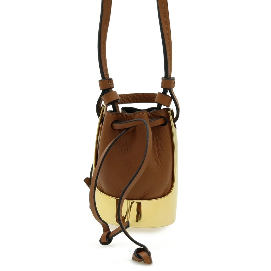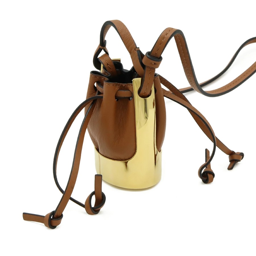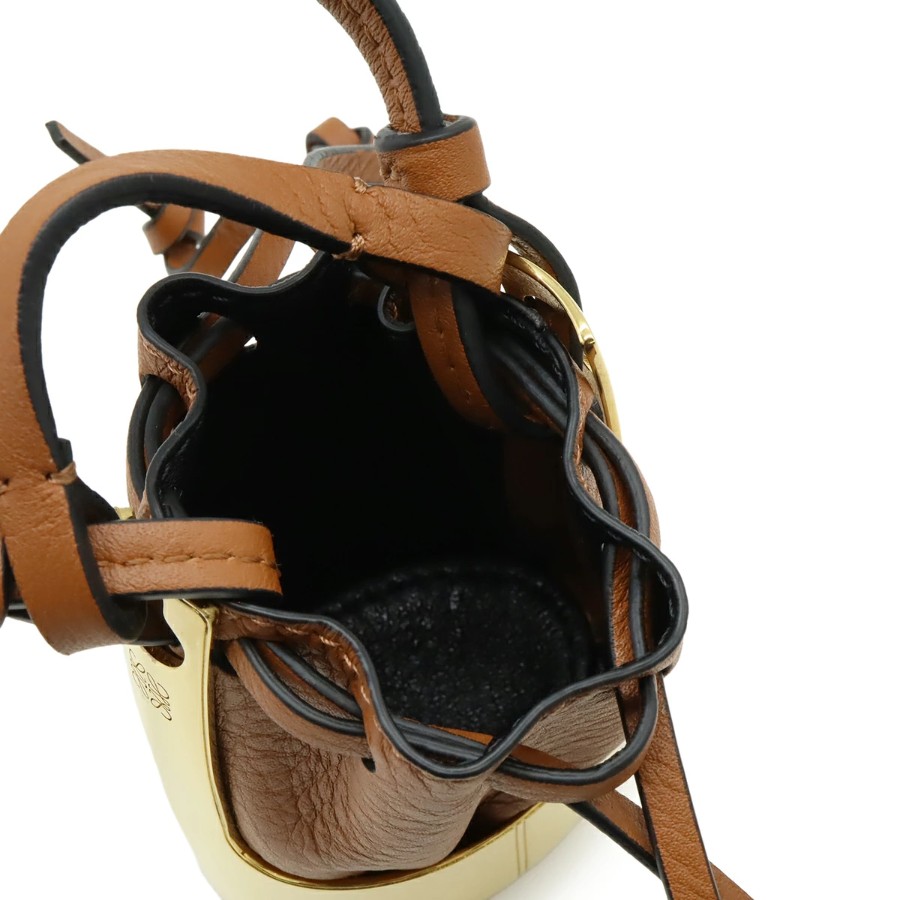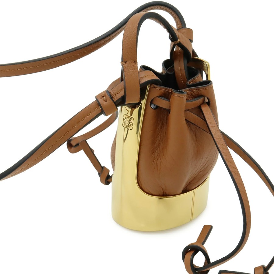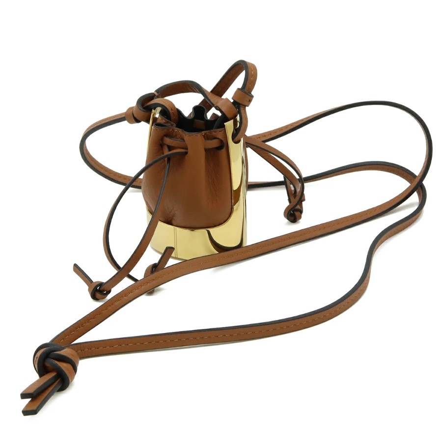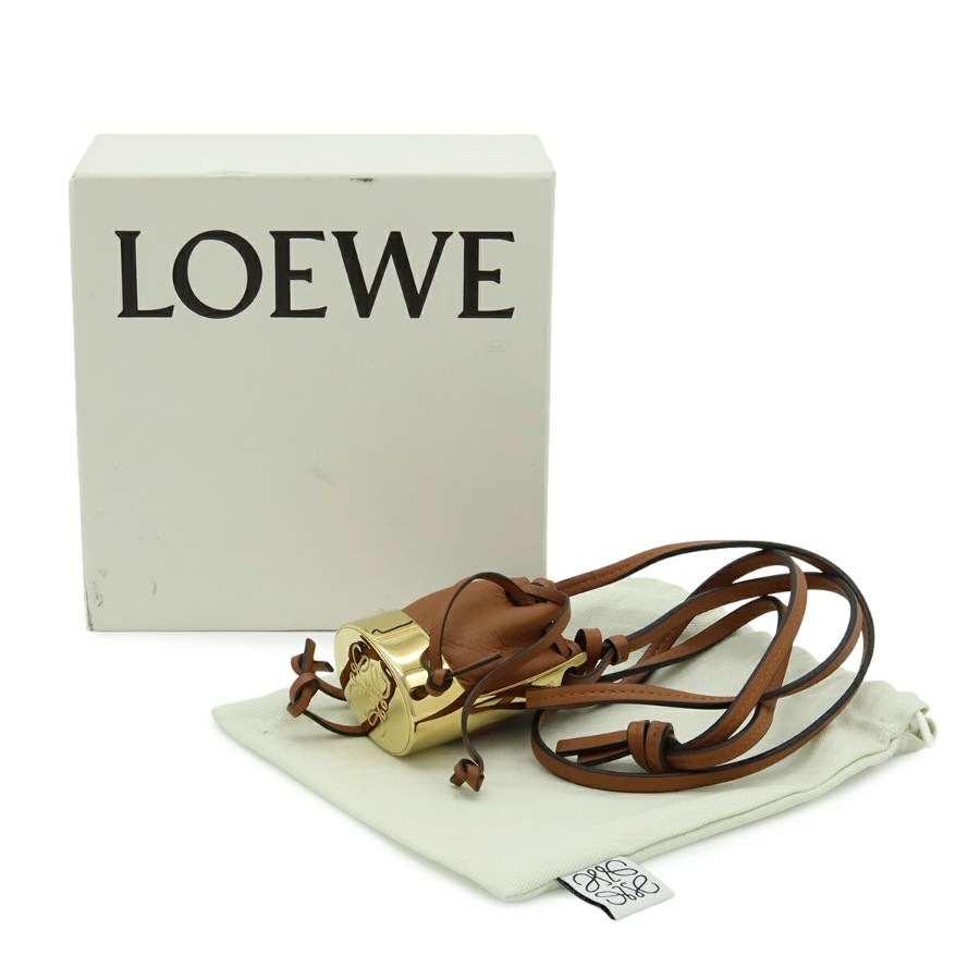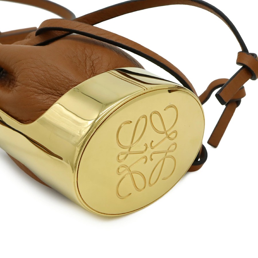 LOEWE Balloon Bag Necklace Pendant, Bag Motif, Mini Bag, Drawstring Pouch, Leather, GP Brown Gold [Pre-owned]