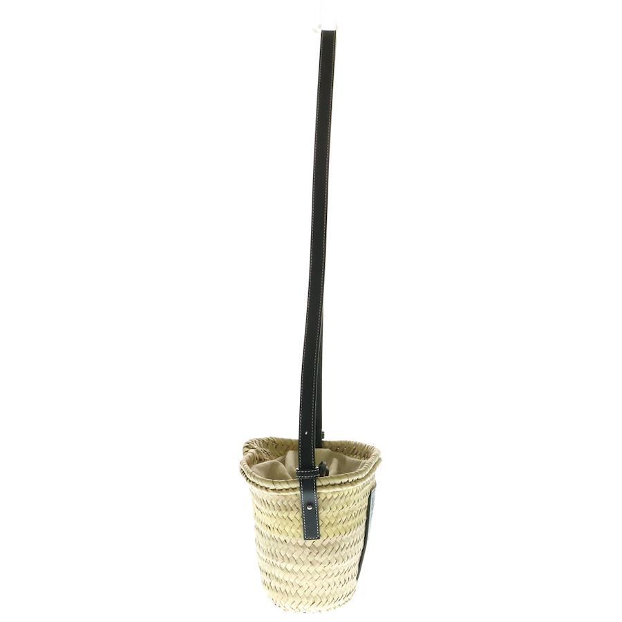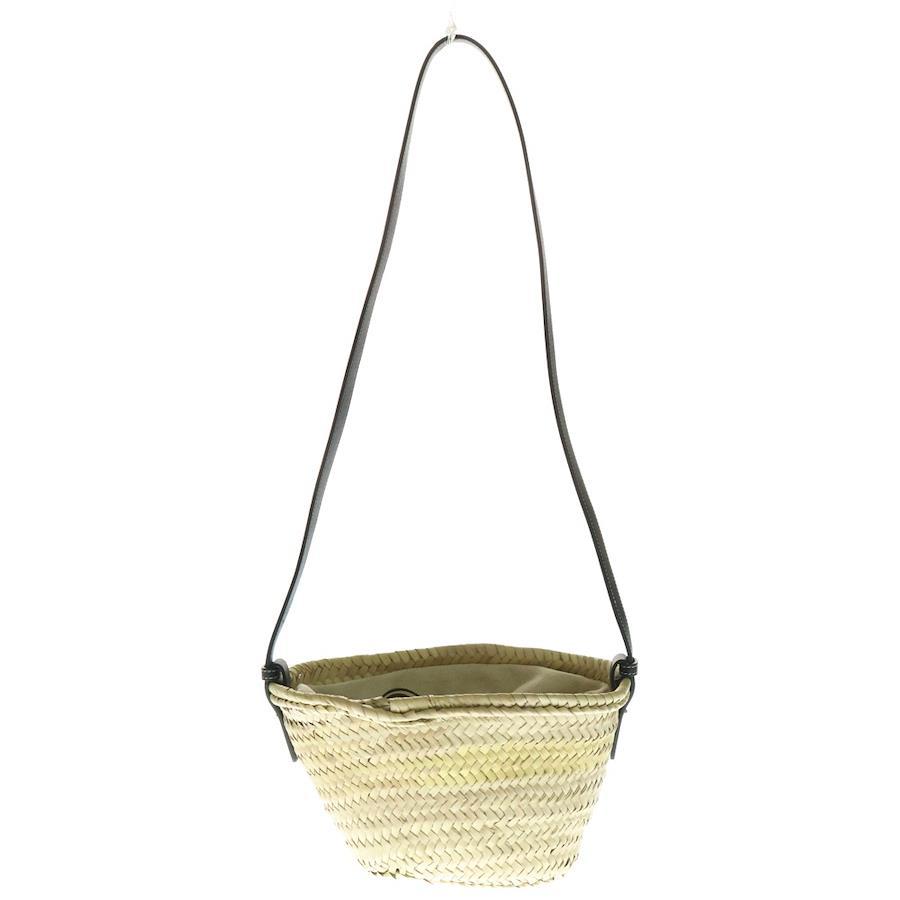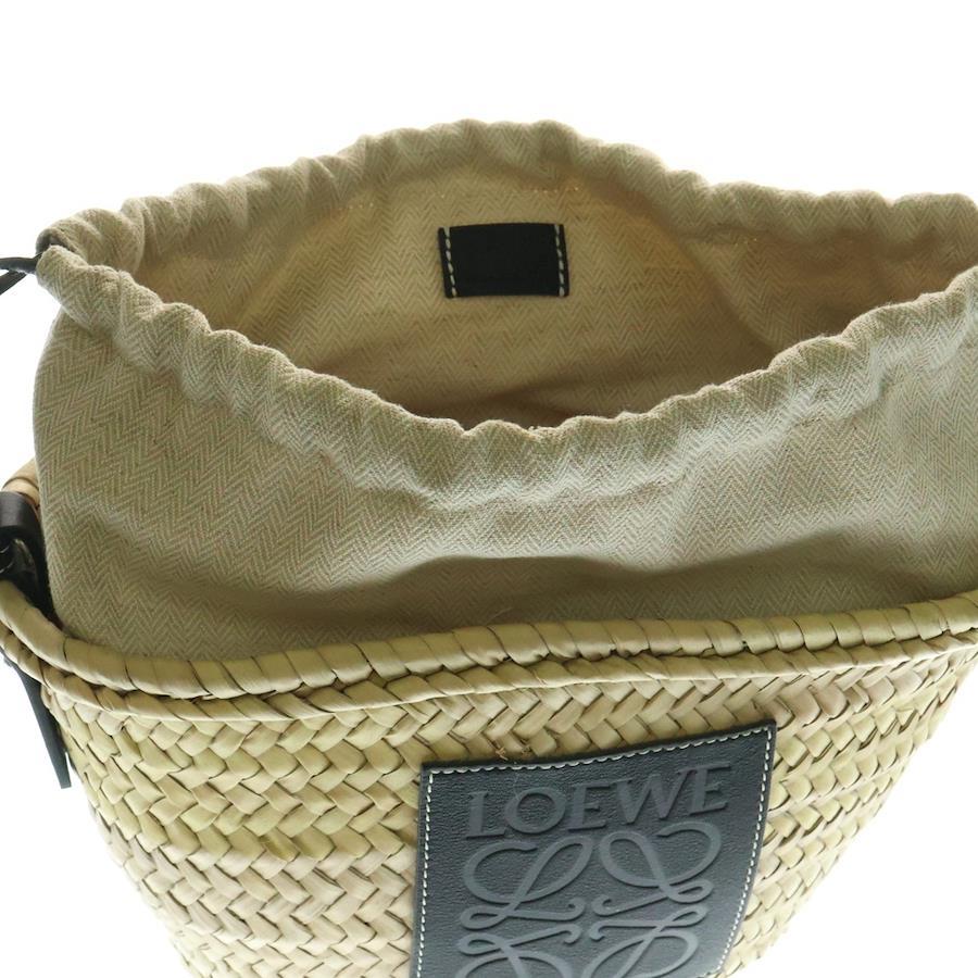 [モデル]バスケットバッグ ドローストリング アナグラム カゴバッグ ブラック×ベージュ ラフィア×レザー