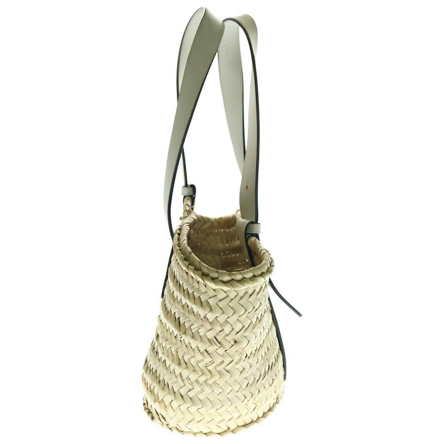 [モデル]バスケットバッグ スモール かごハンドバッグ レザー×ラフィア ホワイト/ナチュラル レディース