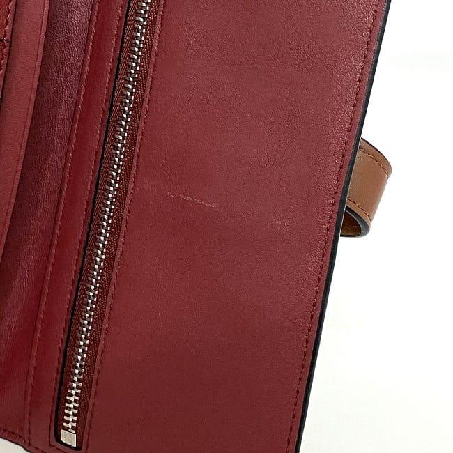 詳細説明:表面左下付近に薄傷、小銭入れ表面に薄傷、カードポケット表面に薄汚れとファスナープルの押し跡傷有、その他目立った使用感はなく比較的綺麗なお品物です。