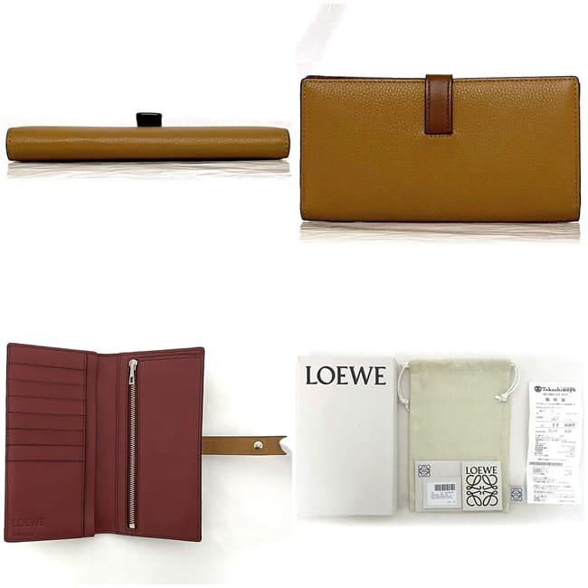 ロエベ 二つ折り 長財布 バーティカル ウォレット ラージ f-22891 ブラウン アナグラム C660S40X01 美品 財布 レザー 中古 272143 LOEWE ホック 茶色 ロゴ シンプル グレインレザー 箱付 本革 ロングウォレット 女性 男性 定番 人気 ブランド 本物 鑑定済